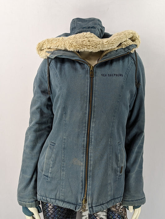Denim Hemp Hood Lamb Zip Up Jacket