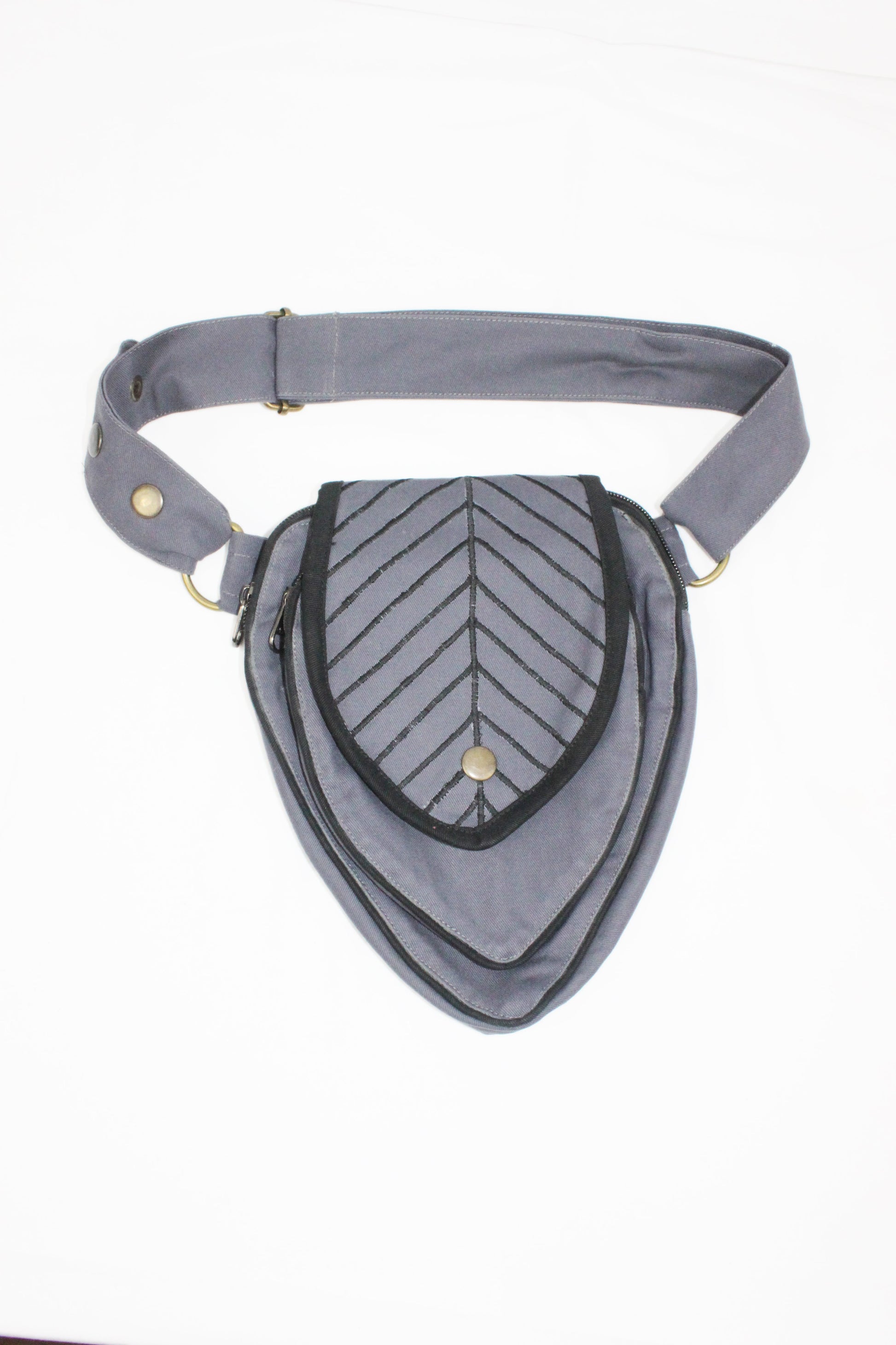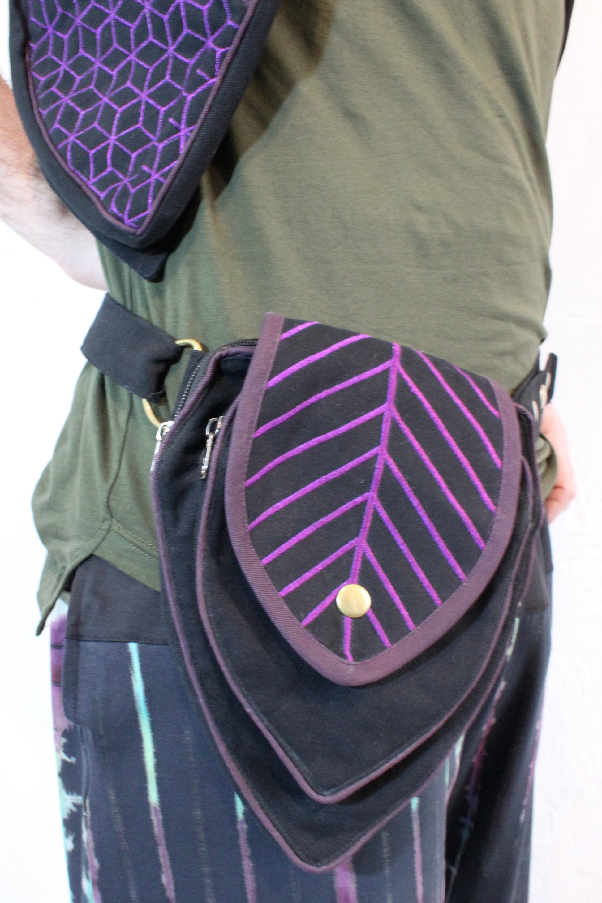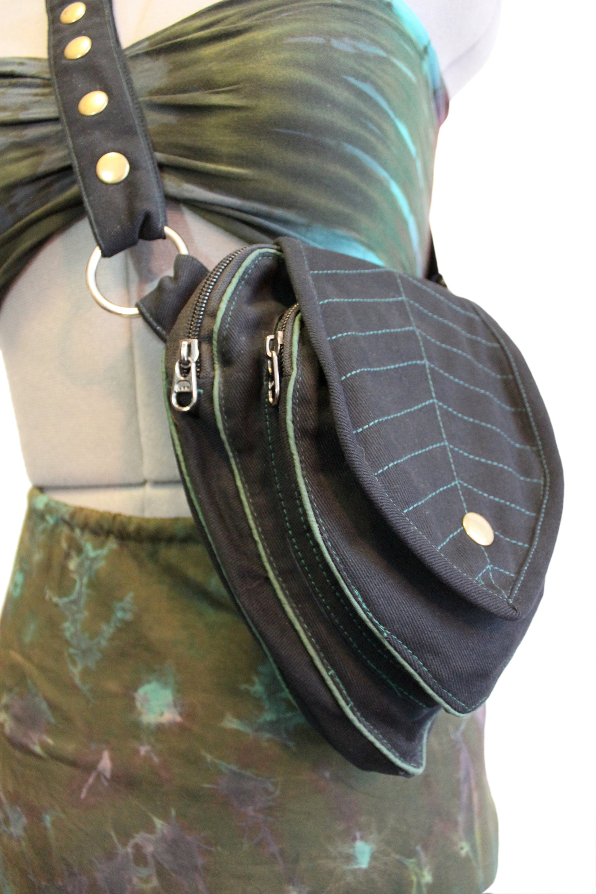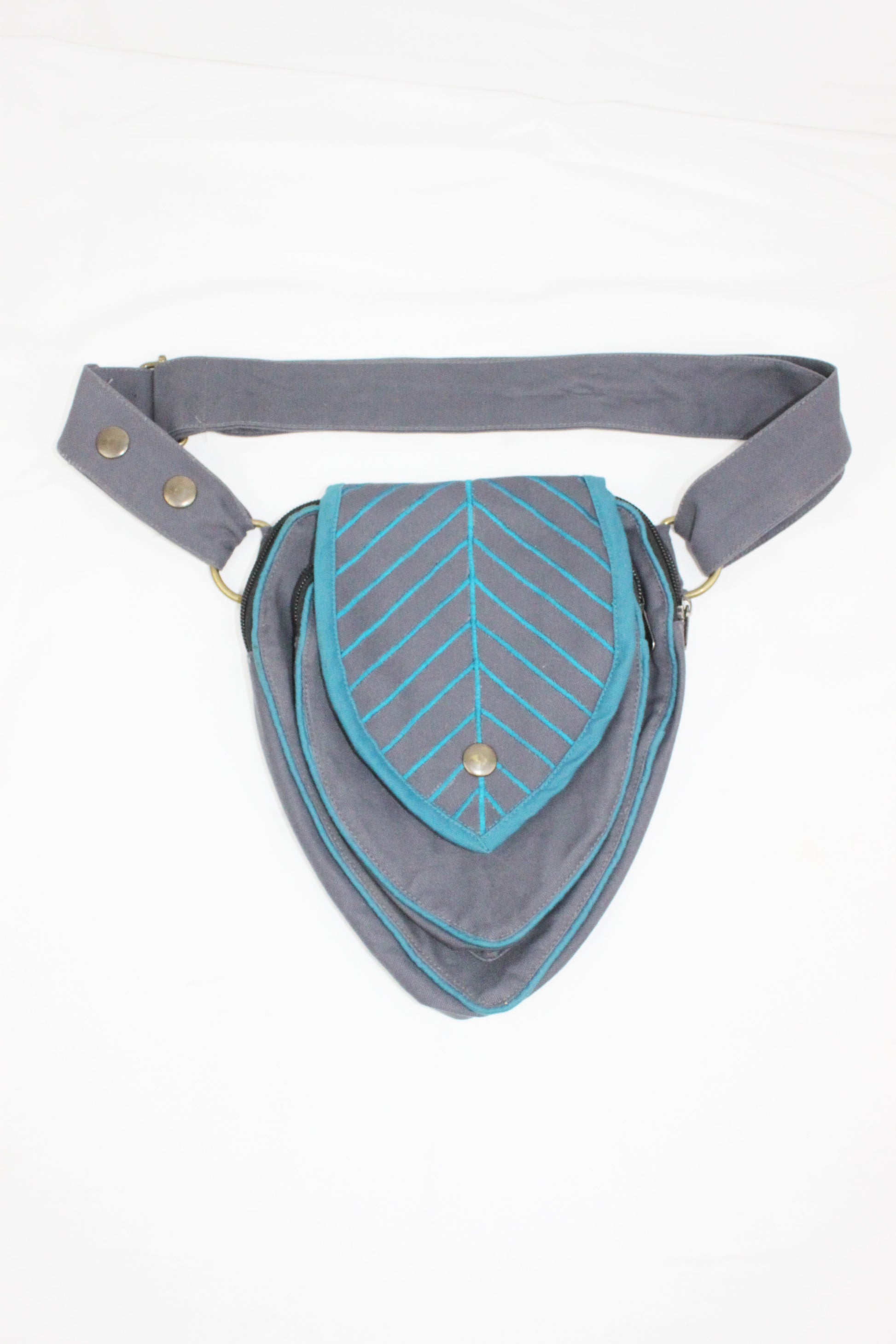 Perfect Leafy Fanny Pack for elven and fairy folk who want to have their hands free on their next big adventure, our Leaf Teardrop Pouch maximizes storage space in a small elegant package. Our outer pouch now comes with thicker embroidery that both shows off the attractive leaf design and serves to reinforce the fabric. With 4 pockets (2 of them zipped), you can be sure never to lose the potions and spell scrolls that are a necessity for all intrepid explorers.