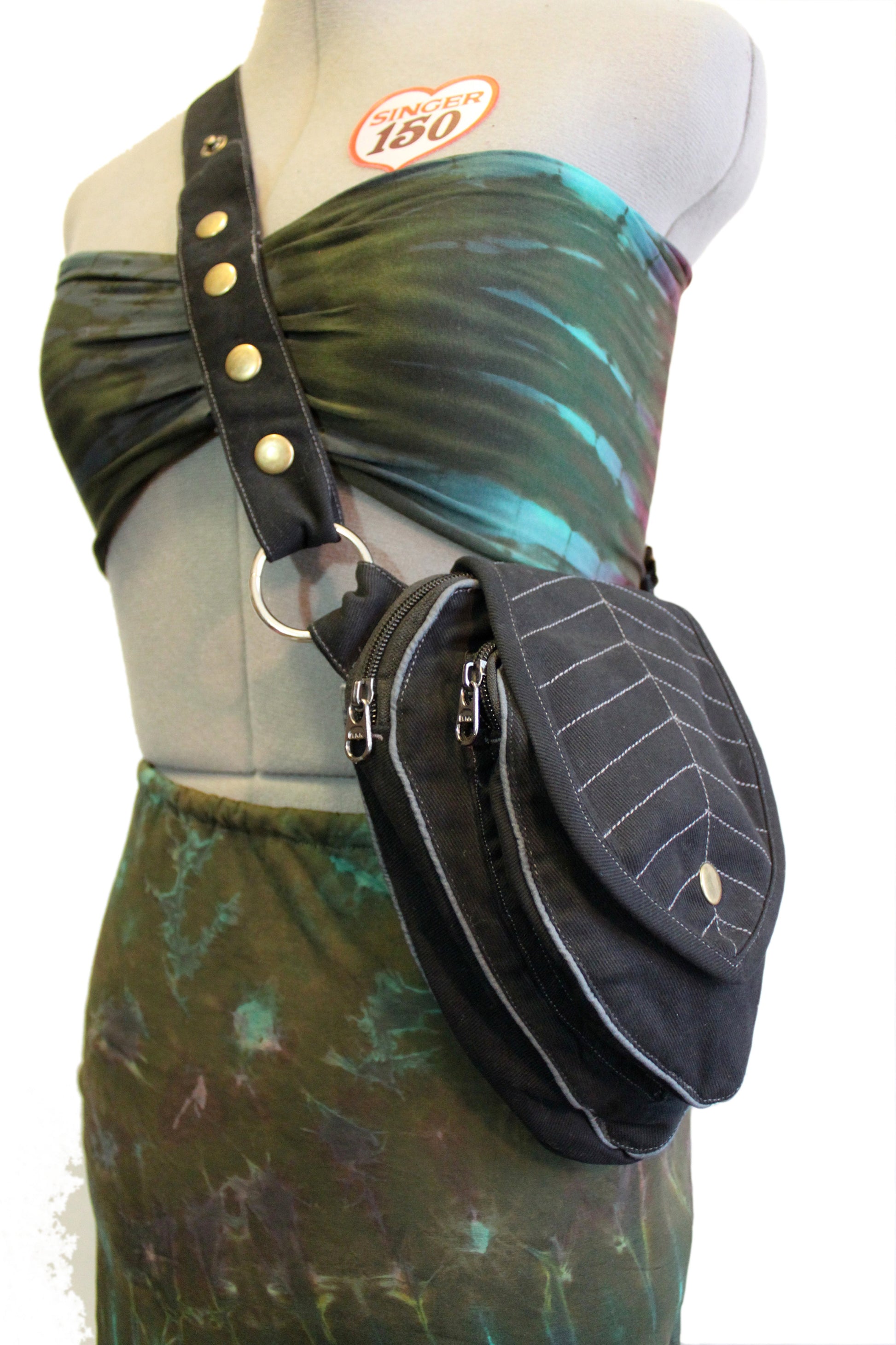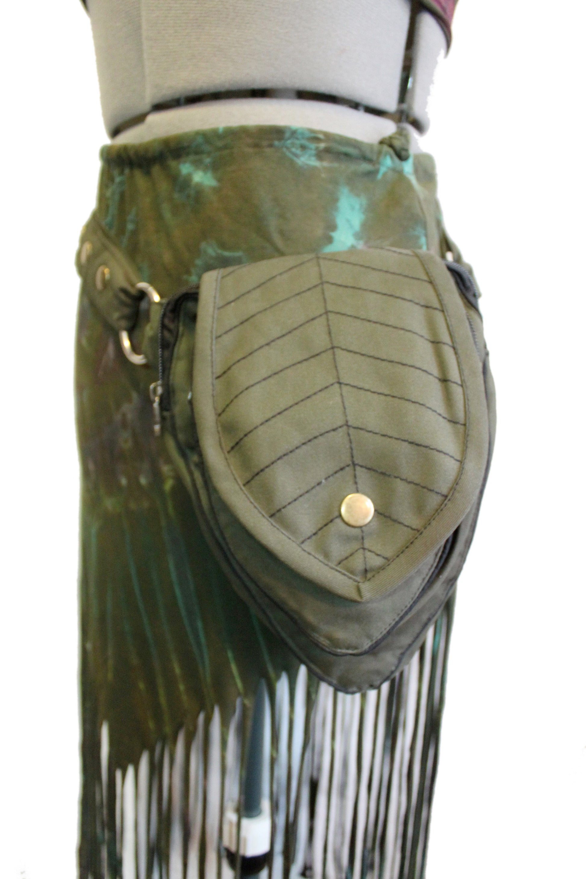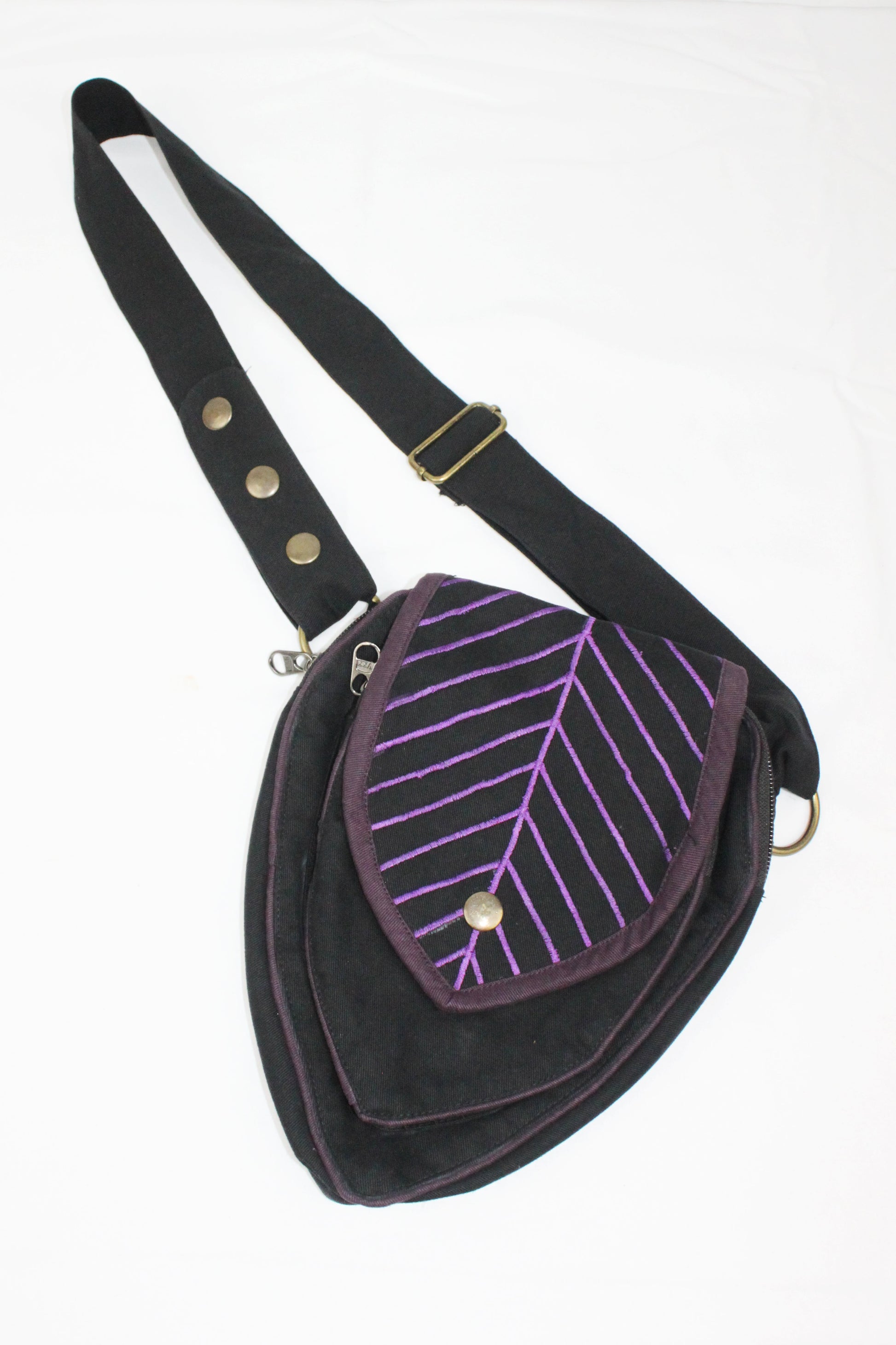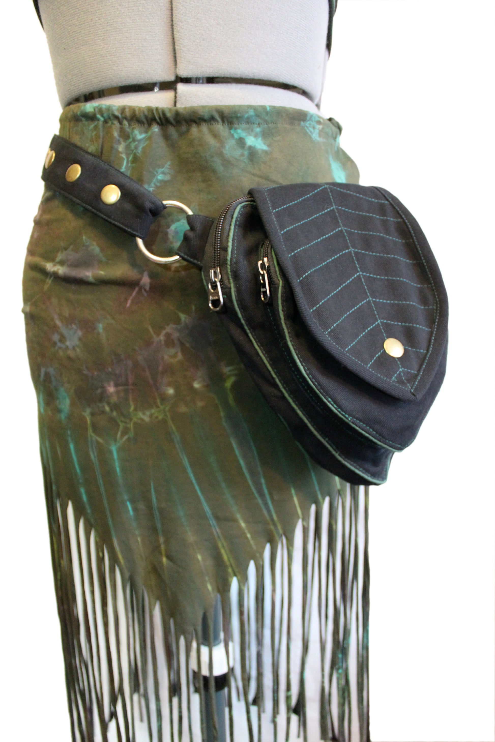 Perfect Leafy Fanny Pack for elven and fairy folk who want to have their hands free on their next big adventure, our Leaf Teardrop Pouch maximizes storage space in a small elegant package. Our outer pouch now comes with thicker embroidery that both shows off the attractive leaf design and serves to reinforce the fabric. With 4 pockets (2 of them zipped), you can be sure never to lose the potions and spell scrolls that are a necessity for all intrepid explorers.