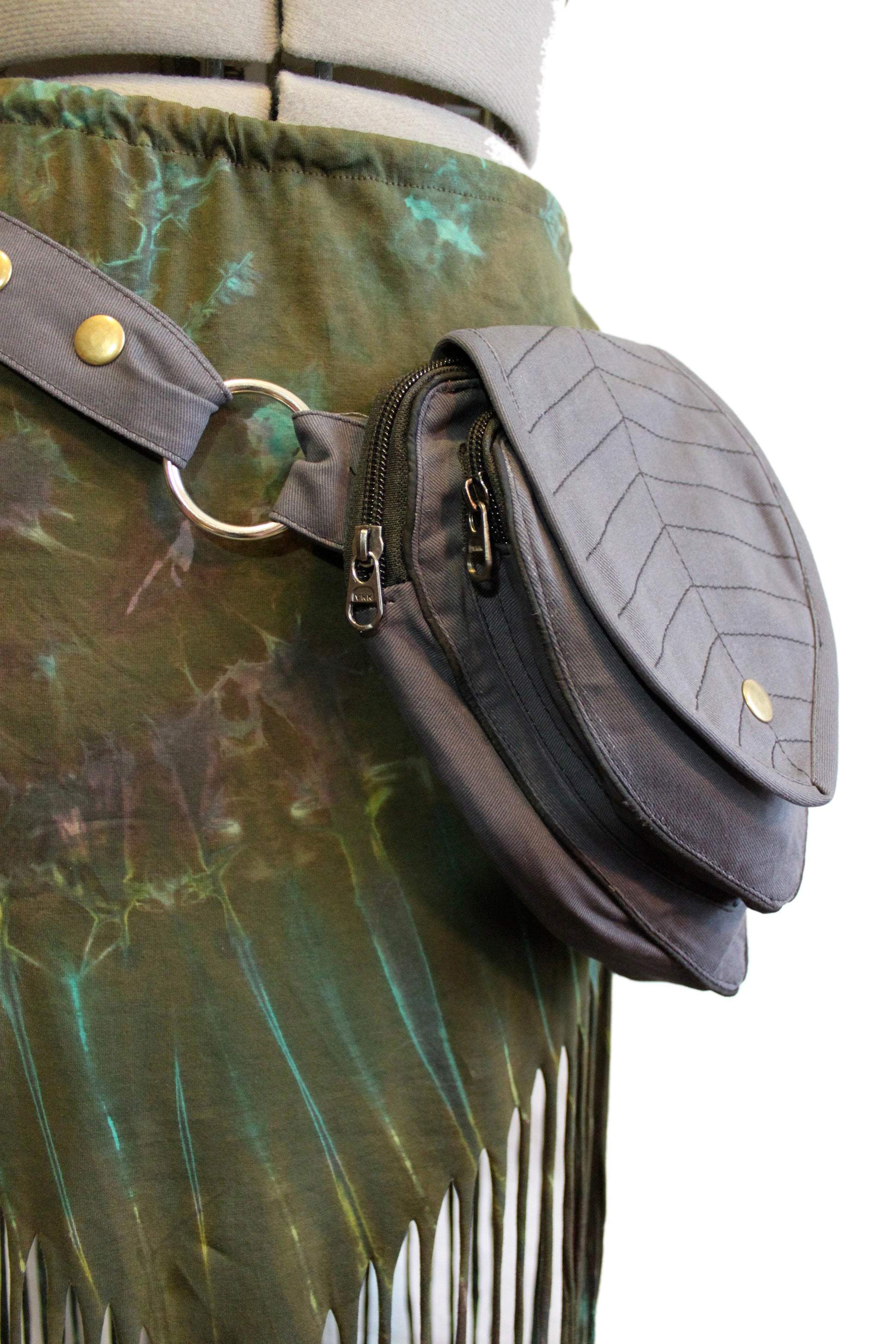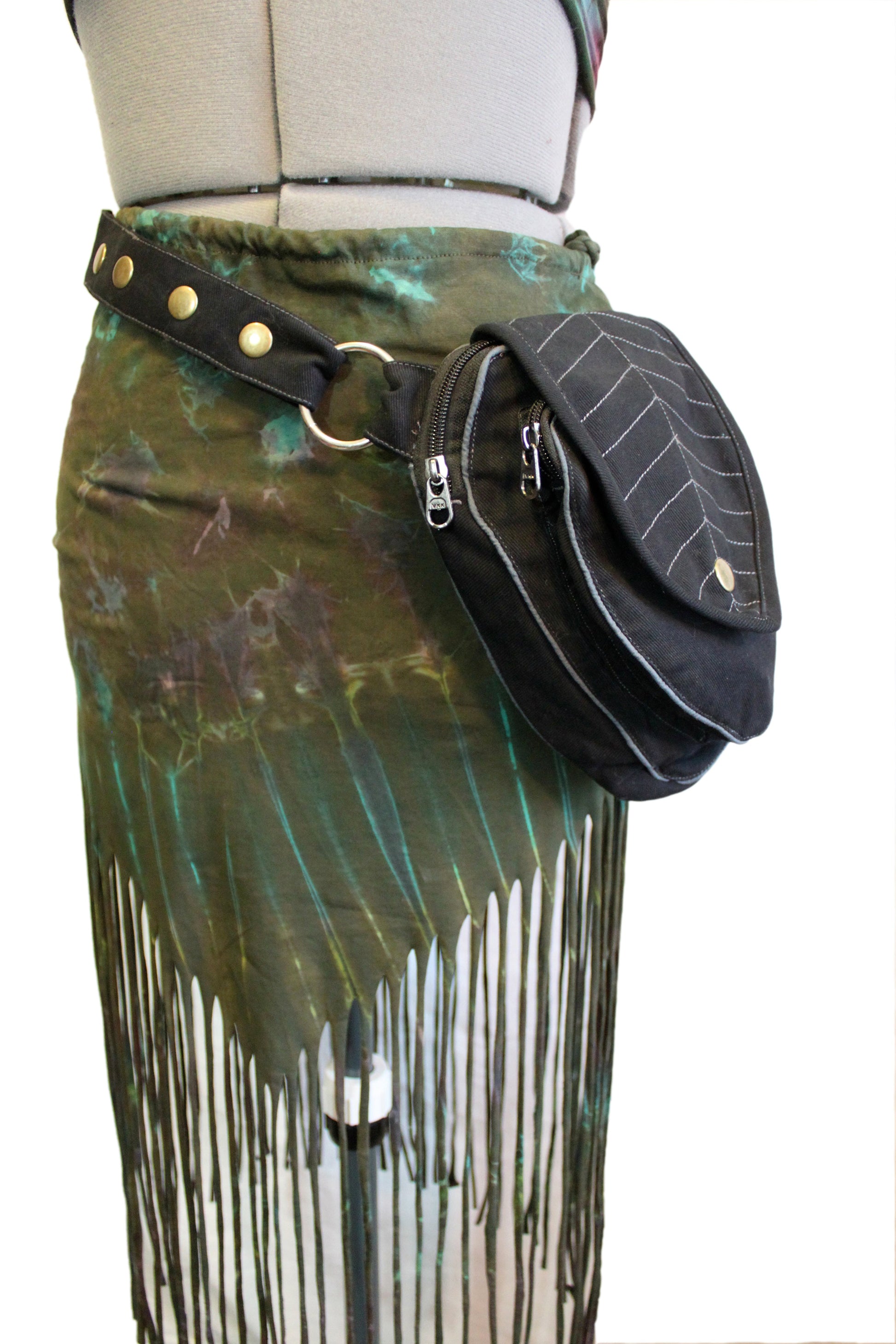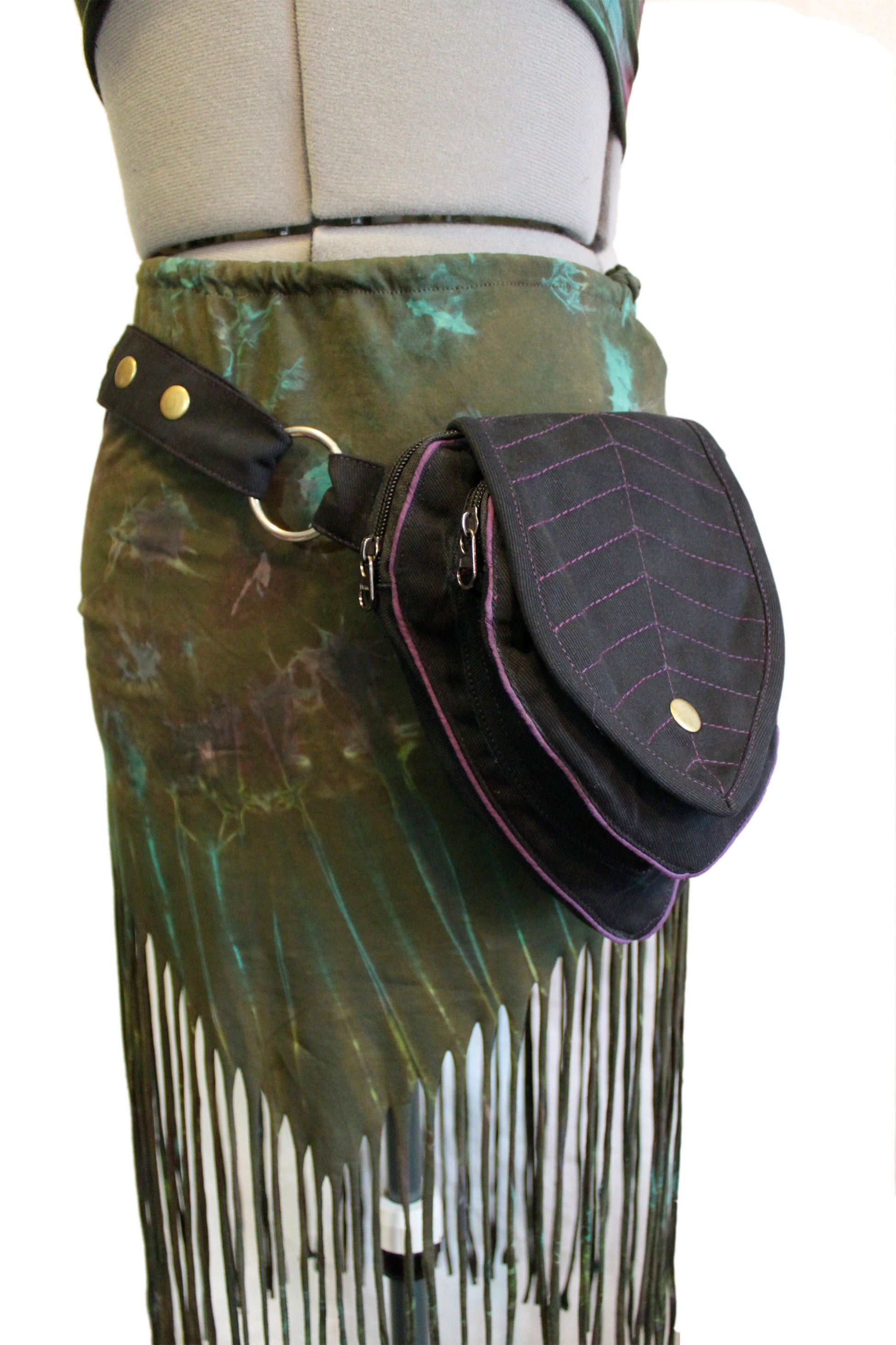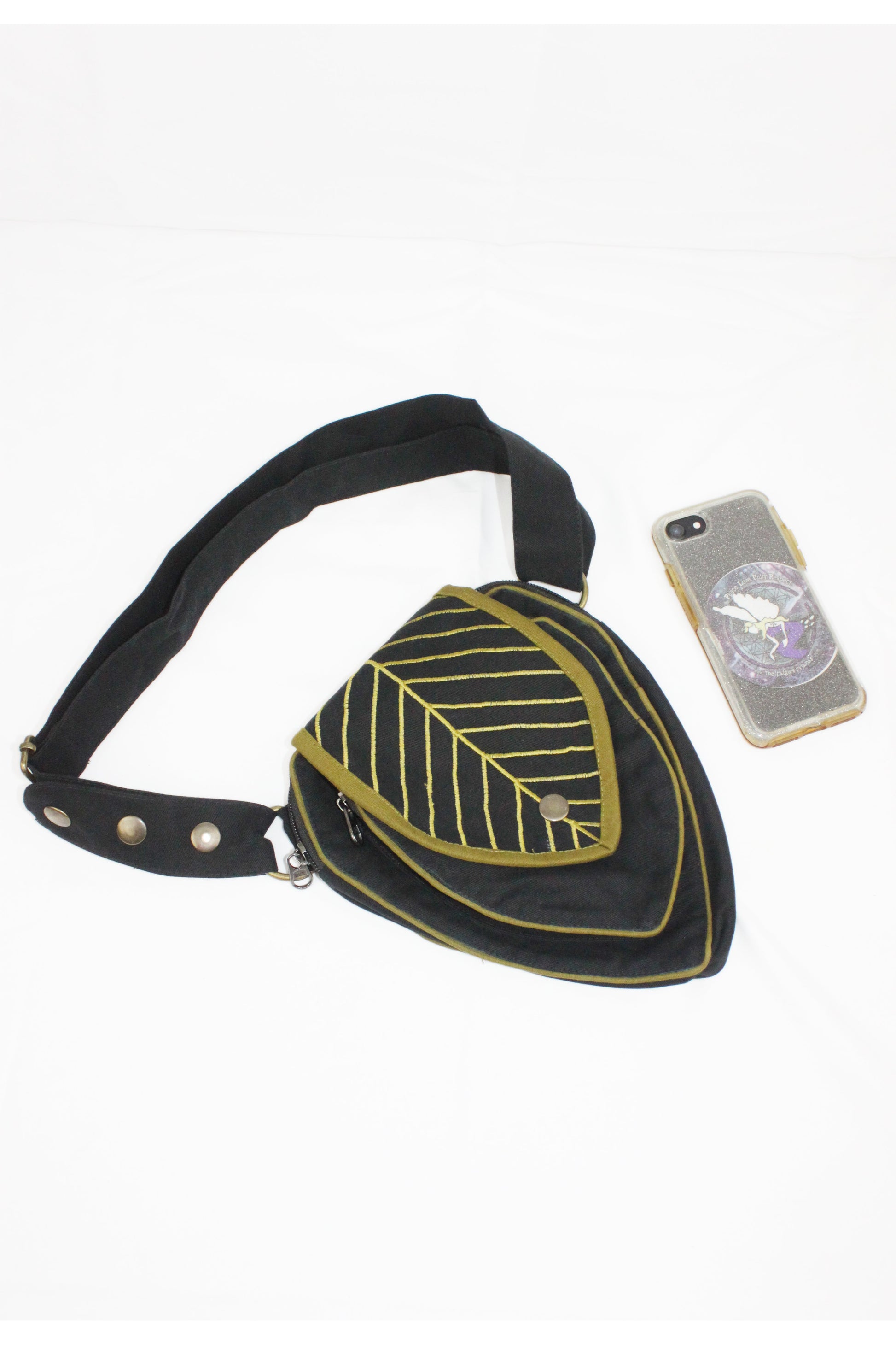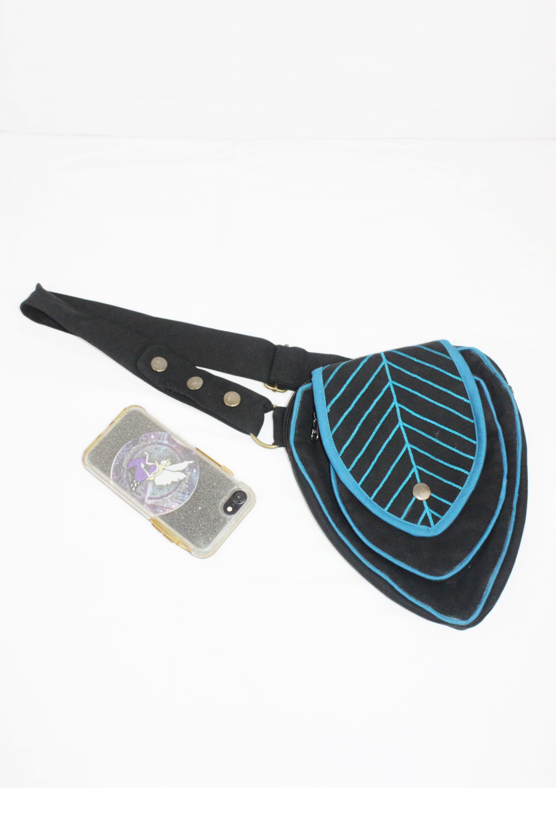 Perfect Leafy Fanny Pack for elven and fairy folk who want to have their hands free on their next big adventure, our Leaf Teardrop Pouch maximizes storage space in a small elegant package. Our outer pouch now comes with thicker embroidery that both shows off the attractive leaf design and serves to reinforce the fabric. With 4 pockets (2 of them zipped), you can be sure never to lose the potions and spell scrolls that are a necessity for all intrepid explorers.