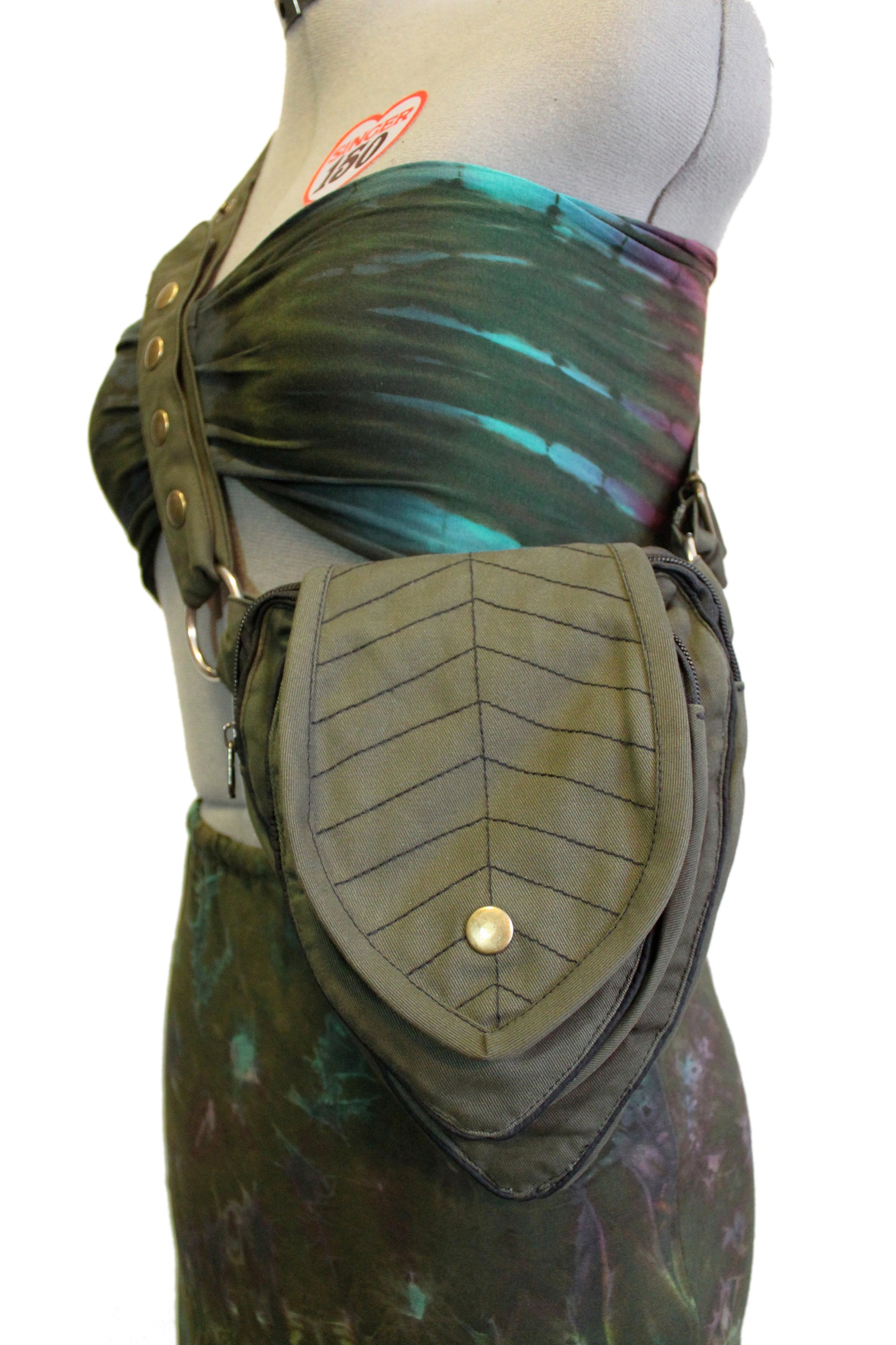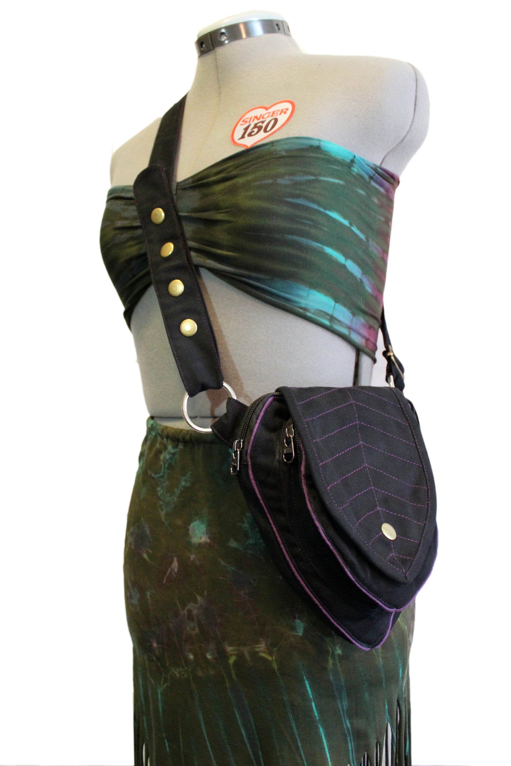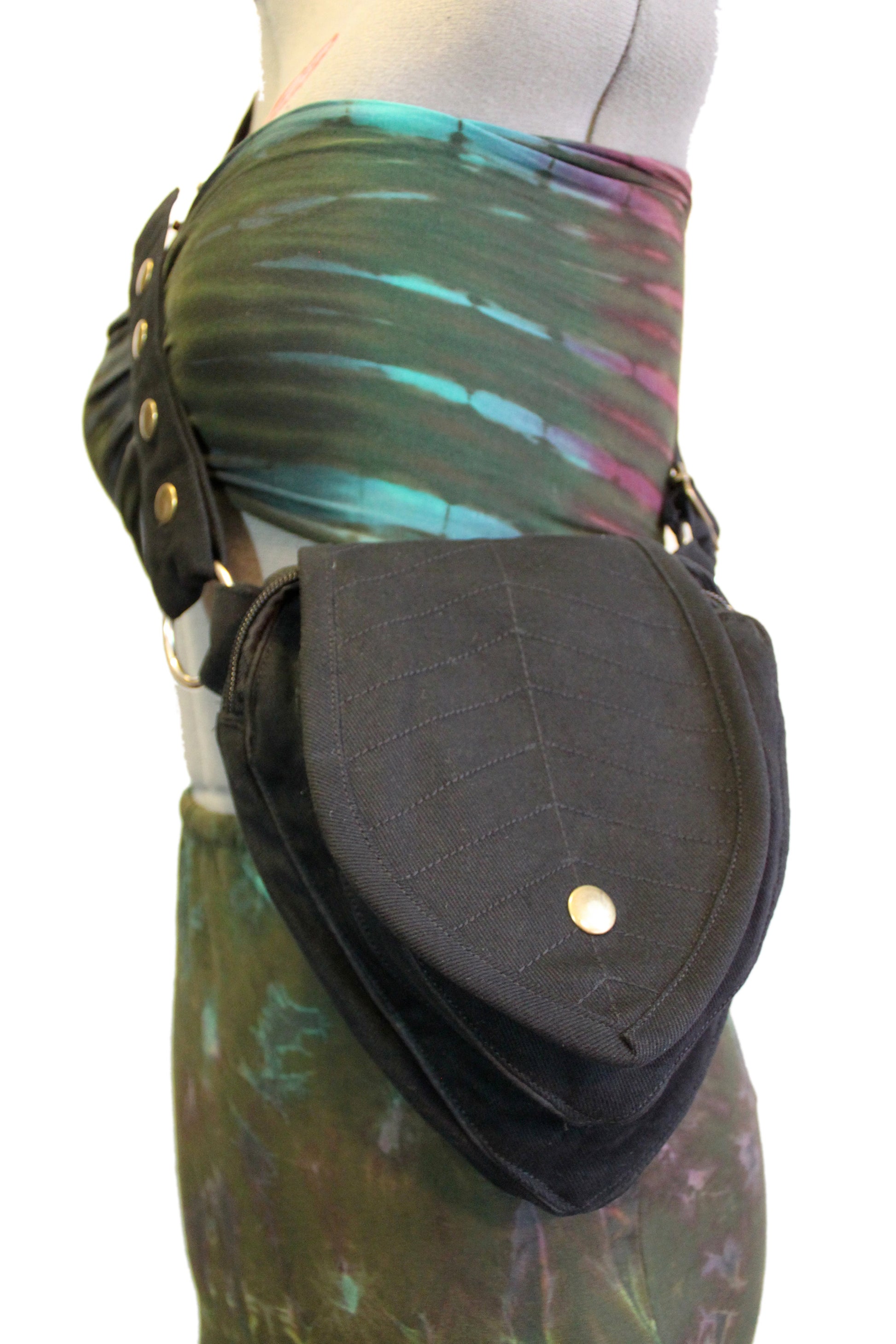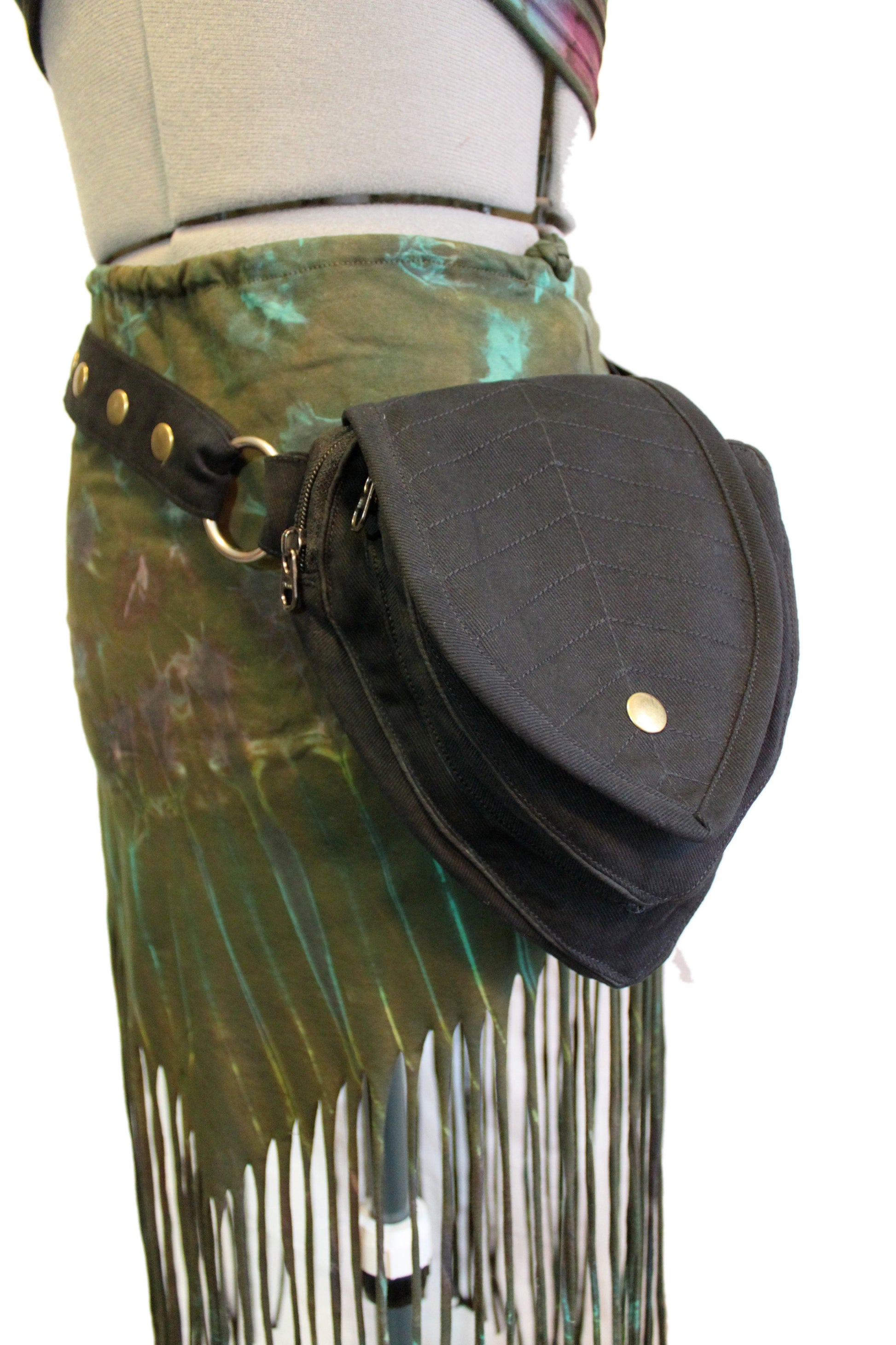 Perfect Leafy Fanny Pack for elven and fairy folk who want to have their hands free on their next big adventure, our Leaf Teardrop Pouch maximizes storage space in a small elegant package. Our outer pouch now comes with thicker embroidery that both shows off the attractive leaf design and serves to reinforce the fabric. With 4 pockets (2 of them zipped), you can be sure never to lose the potions and spell scrolls that are a necessity for all intrepid explorers.