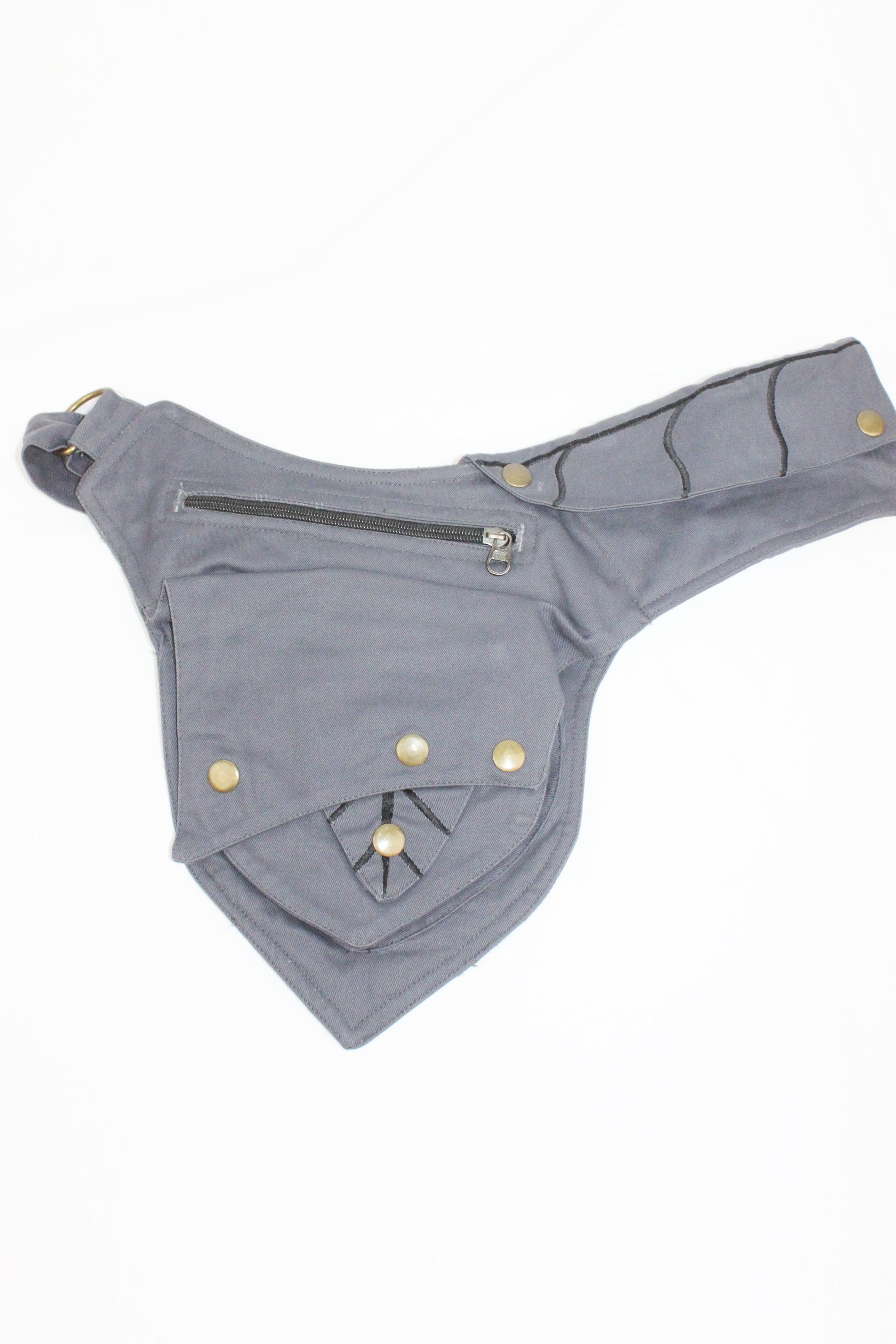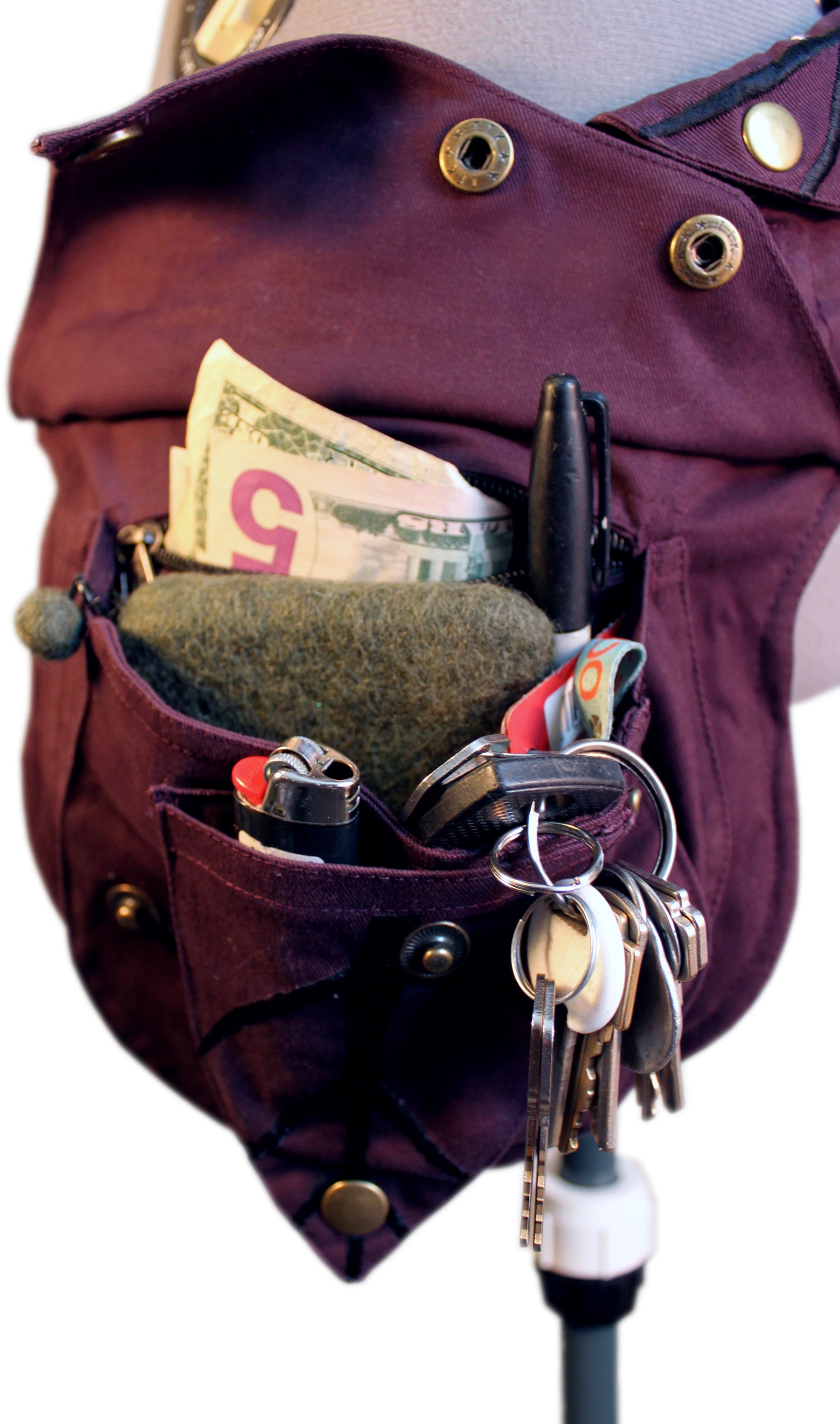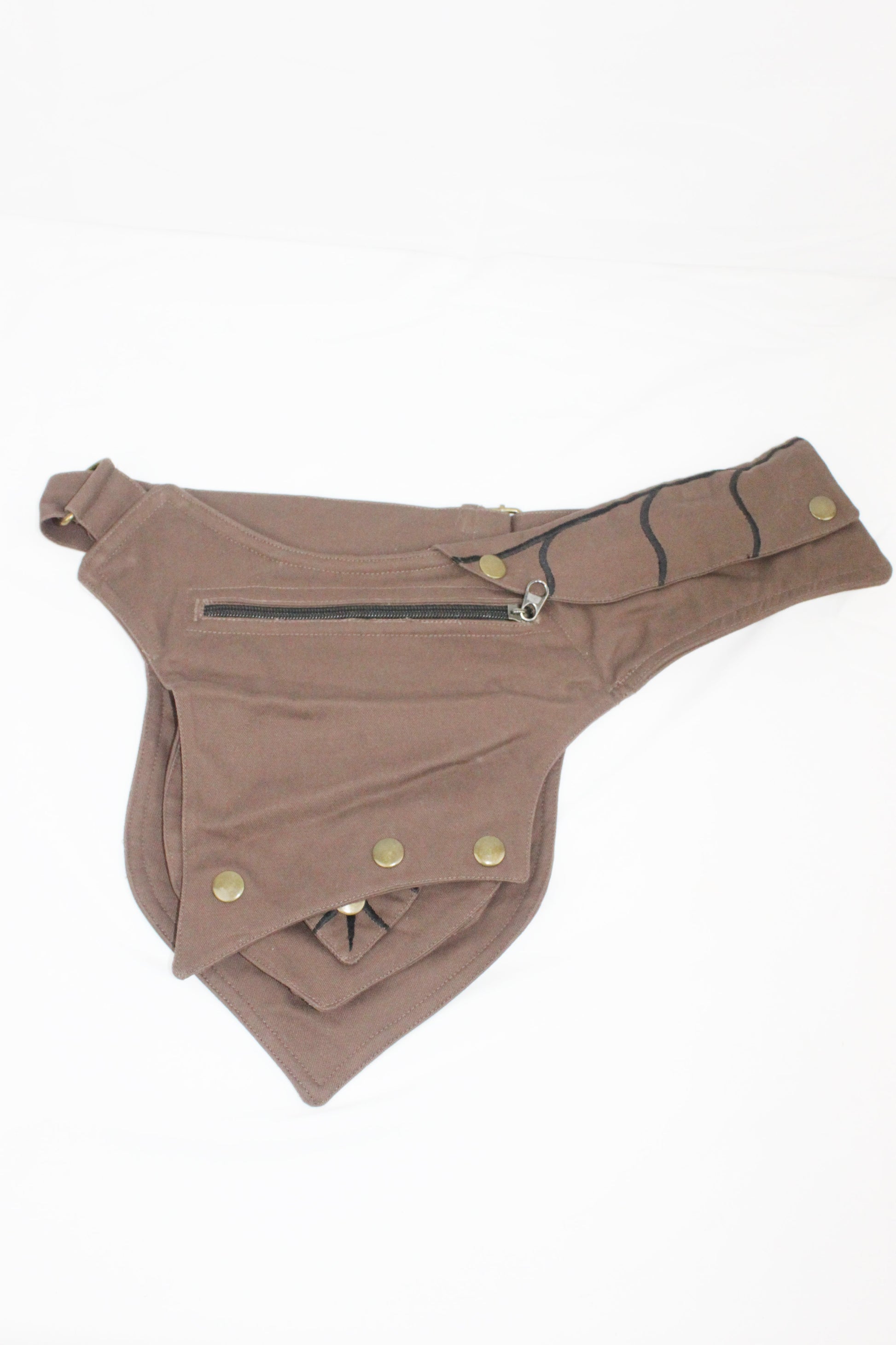 With nine pockets (five with zippers) in total, we’ve left no crystal unturned when it comes to organizing your belongings. We’ve intentionally designed our pockets to have a low, lay-flat, profile so as not to interrupt your rhythms while walking or dancing. The belt holds secure by means of three antiqued brass snaps. These snaps and included belt slider ensure a comfortable fit across all waist sizes. Extending the length of the strap also allows this belt to be worn across the torso as a satchel.