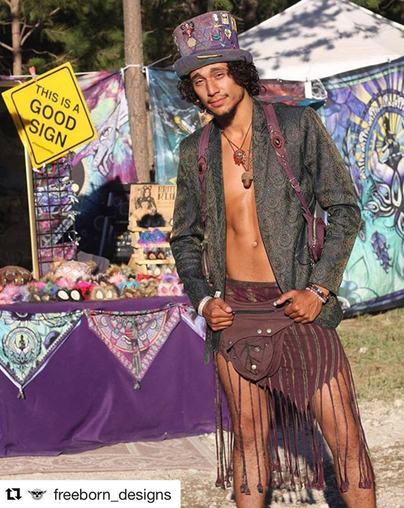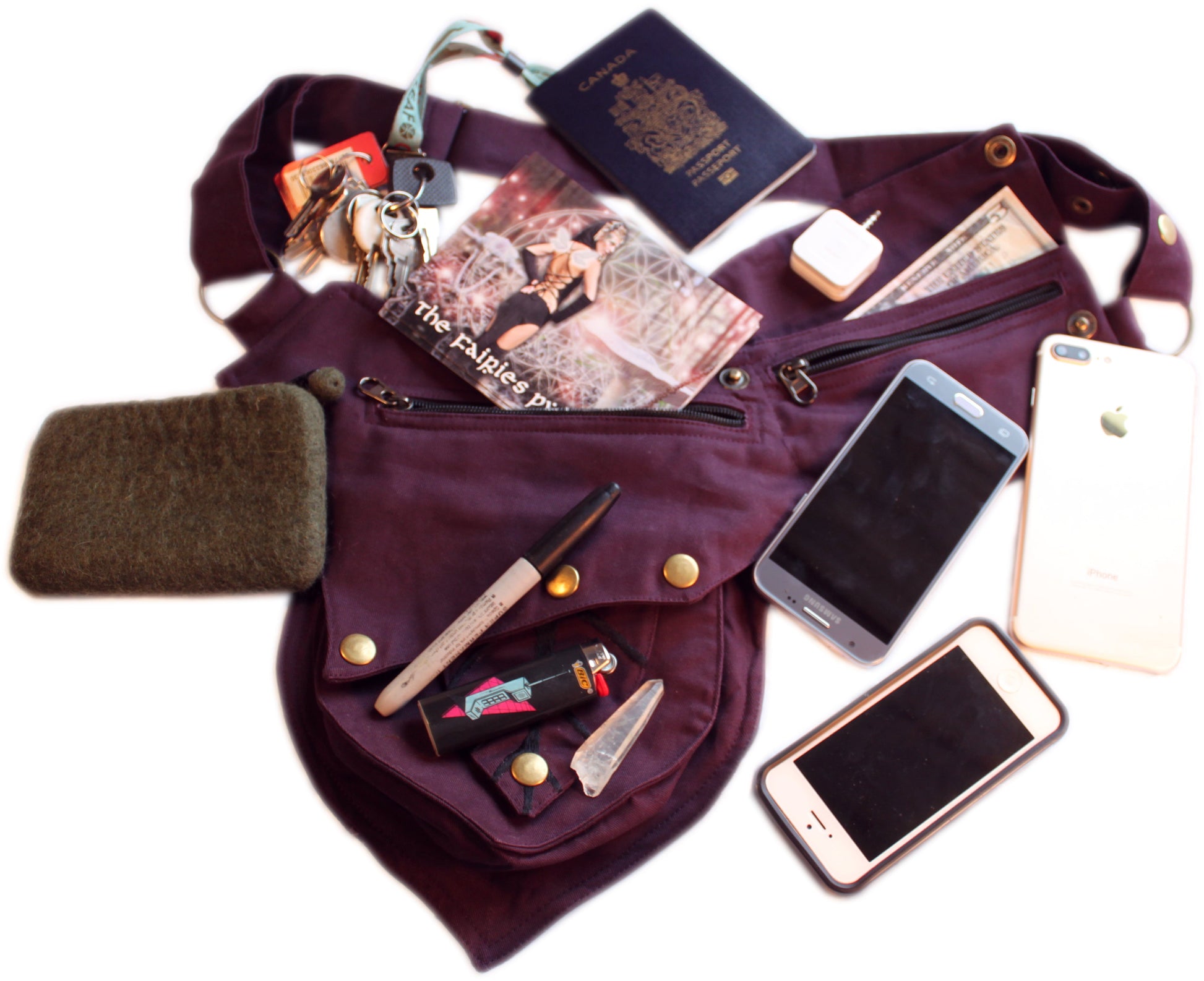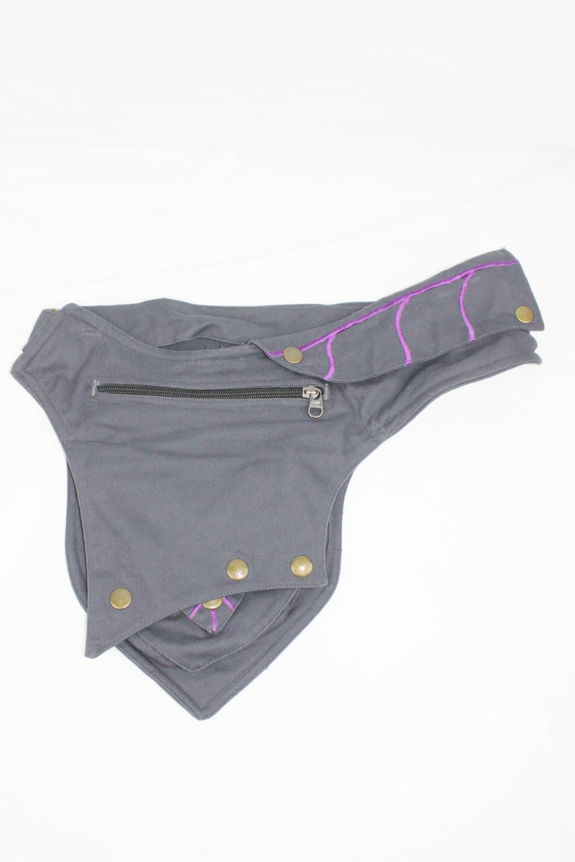 With nine pockets (five with zippers) in total, we’ve left no crystal unturned when it comes to organizing your belongings. We’ve intentionally designed our pockets to have a low, lay-flat, profile so as not to interrupt your rhythms while walking or dancing. The belt holds secure by means of three antiqued brass snaps. These snaps and included belt slider ensure a comfortable fit across all waist sizes. Extending the length of the strap also allows this belt to be worn across the torso as a satchel.