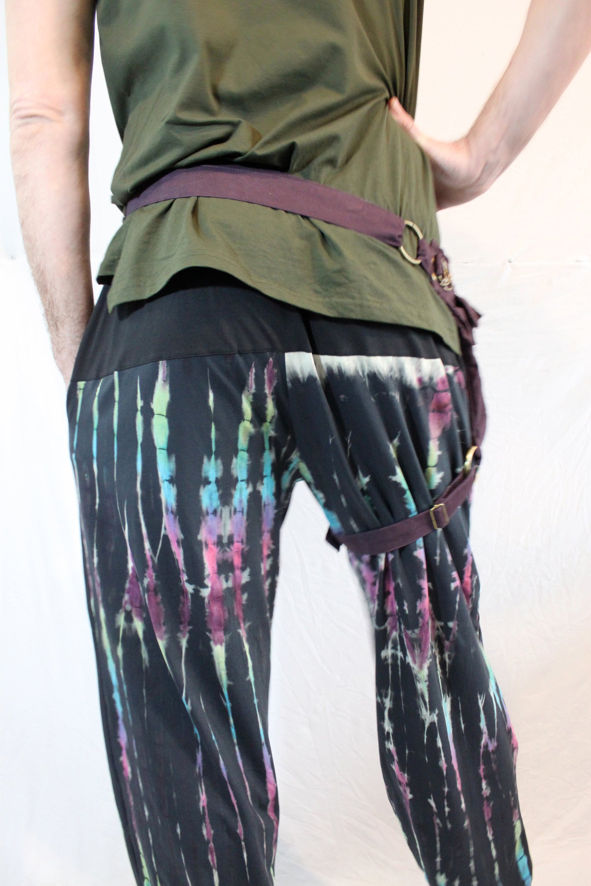 The leg belt is the same as the waist belt just in a smaller size. Use the rectangle metal hardware to adjust the length and make sure that all three snaps are together.