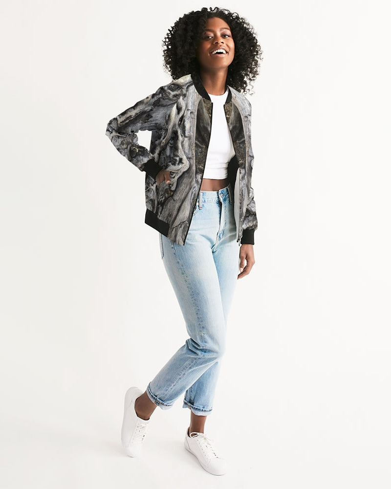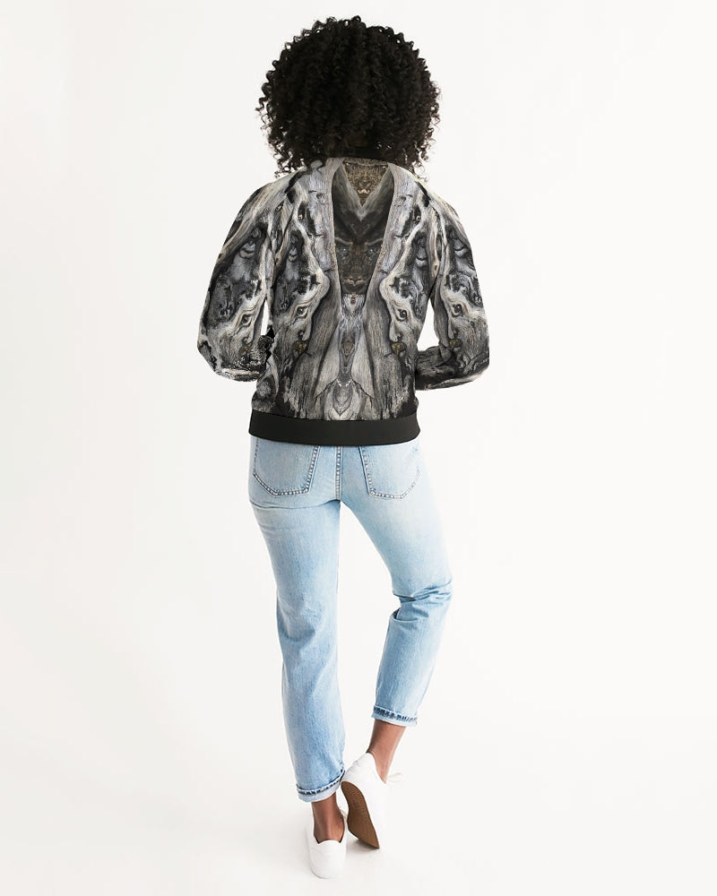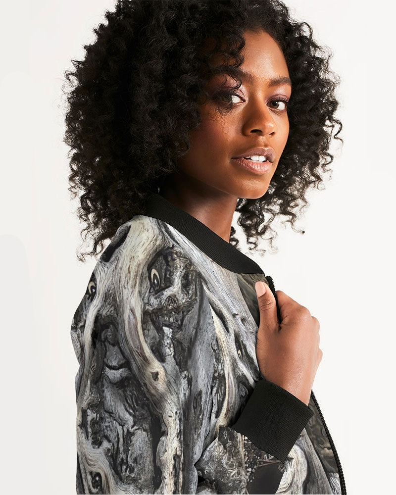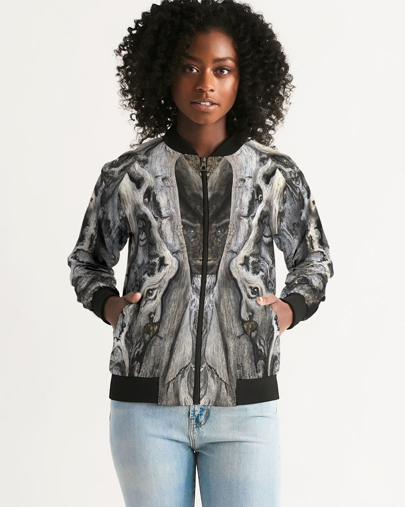About The ArtAncient Ones @Translating_For_Trees-is a Pareidolia Collaboration with Mother Nature. I enhance Wood to Reveal Messages from the Books of the eARTh.Ancient onesIn Hawaii, Queens Bath, beautiful souls show their faces in this beautiful dead tree beaten by the beach for who knows how many years, decades, or centuries. Product DetailsHand-cut and crafted with care, your custom designed Women's Bomber Jacket will set off any look! Its lightweight, airy fabric is lined with the perfect amount of insulation for the chillier months making this a great year round go-to.