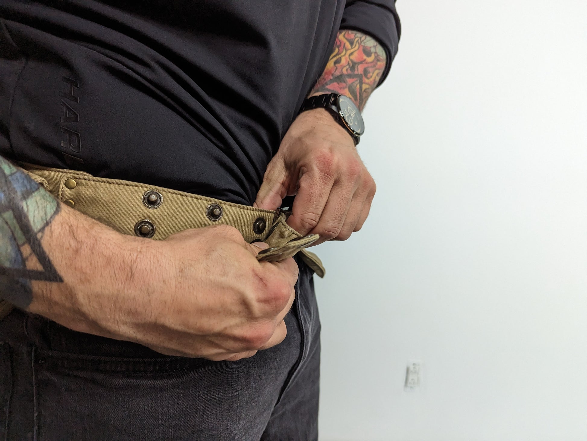 They have snap buttons on the front and the lace up back makes they belts super adjustable