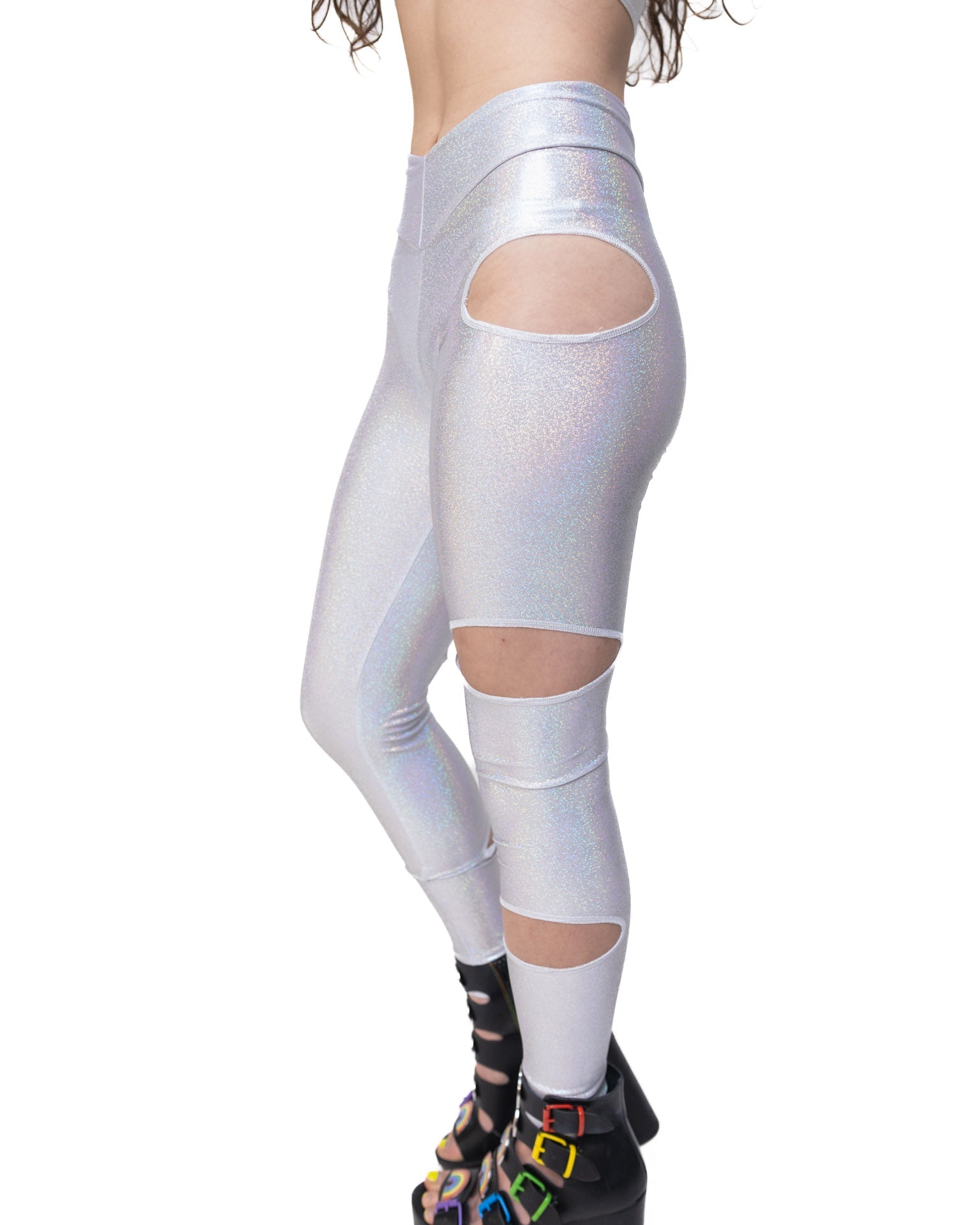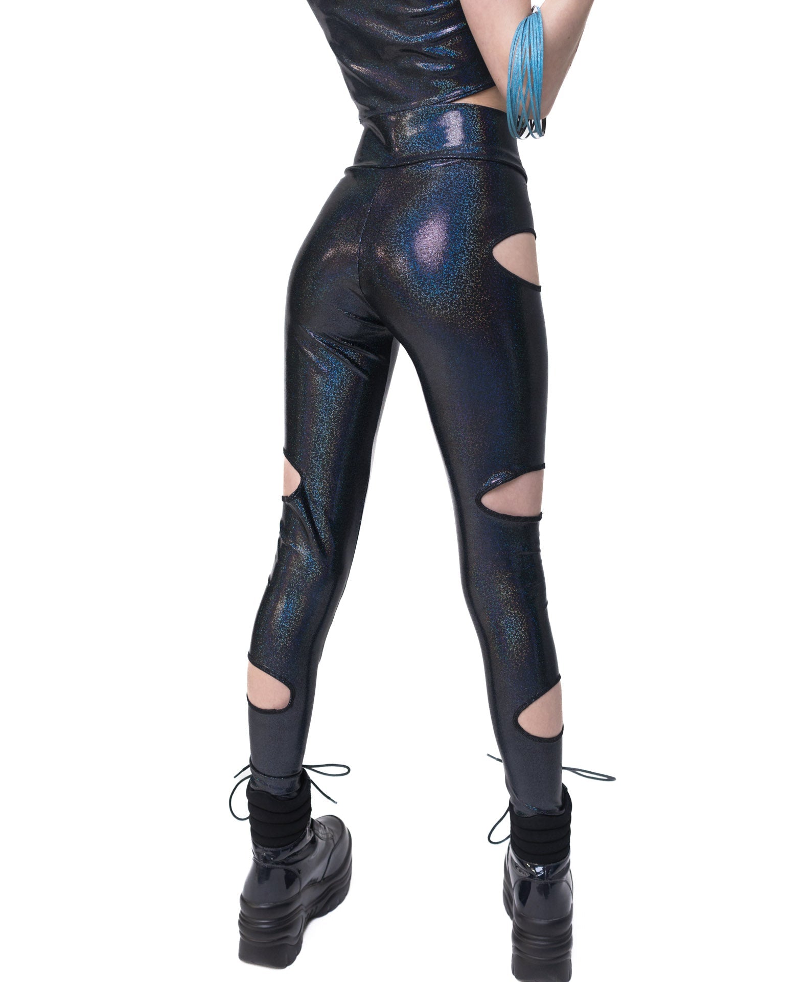 Get ready to turn heads with our Cut Out Leggings, designed for ultimate comfort and a sleek, curve-hugging fit. Featuring unique peekaboo cutouts and a flattering high-waisted design, these leggings are the perfect addition to your rave or festival wardrobe!