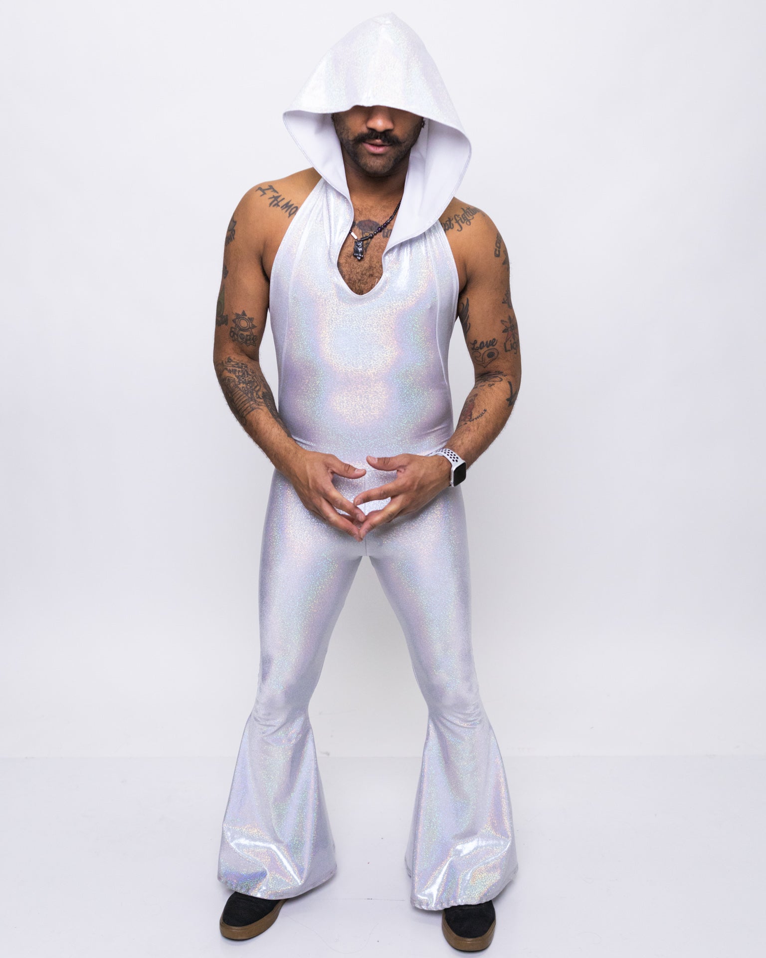 Get ready to dance the night away in our Blast from the Past One-Piece Disco Romper! With its open back halter style and hood, flared bell bottom pant legs, and flattering hip seam, this romper brings the bold spirit of the disco era right into the present. Perfect for festivals, raves, or any occasion where you want to stand out and move freely!