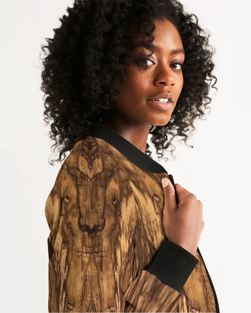 About The ArtEthereal Ethereal is a depiction of my personal journey. It represents becoming ones own hero, lion, and dragon in times you need to save yourself. Product DetailsHand-cut and crafted with care, your custom designed Women's Bomber Jacket will set off any look! Its lightweight, airy fabric is lined with the perfect amount of insulation for the chillier months making this a great year round go-to.
