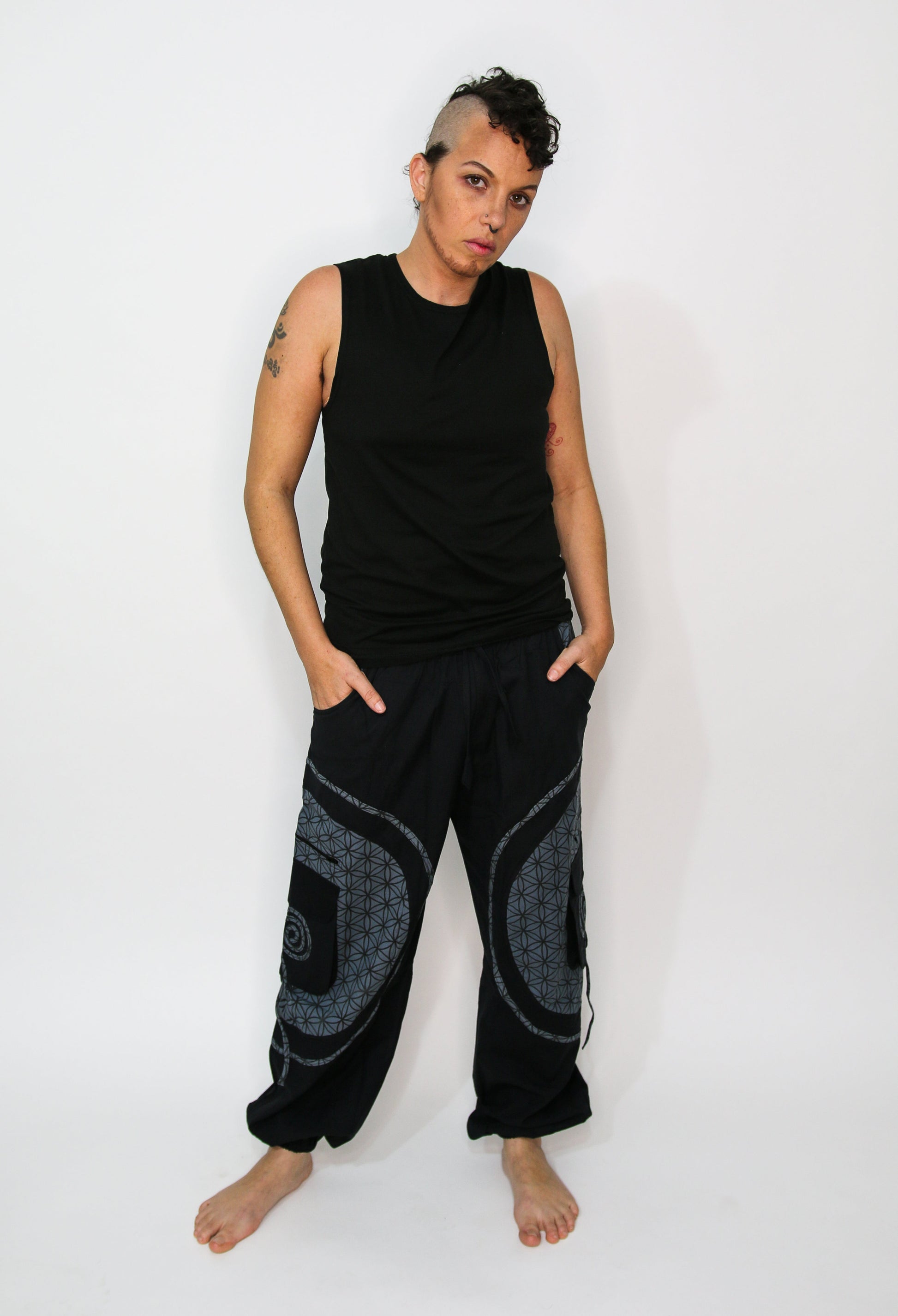 Get Your Flow On with the Grey Flower of Life Flow Pants - Ultimate Comfort, Function, and Style!