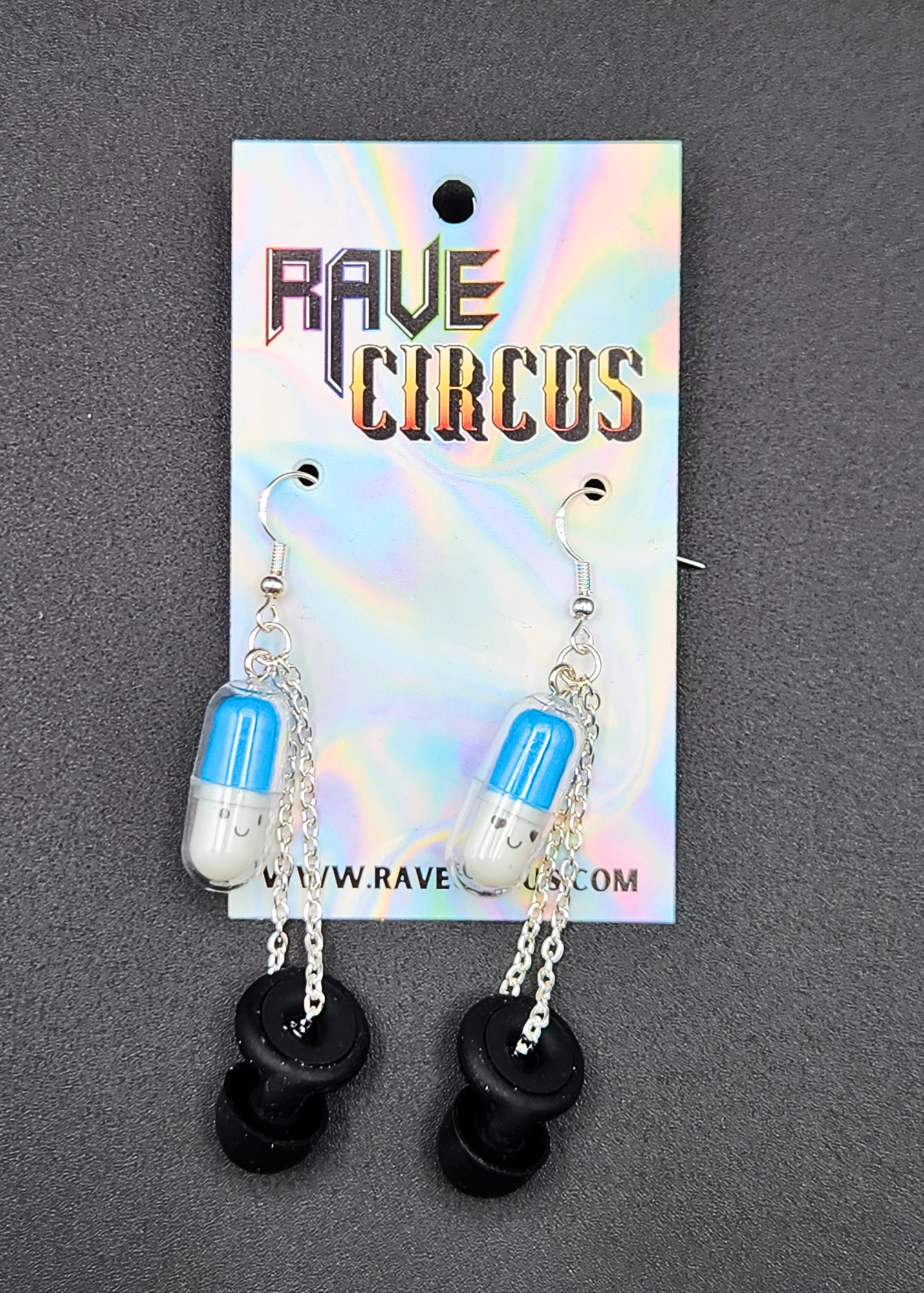 Happy Pill Loop Earplug Earrings - Multiple colors - Black Loops