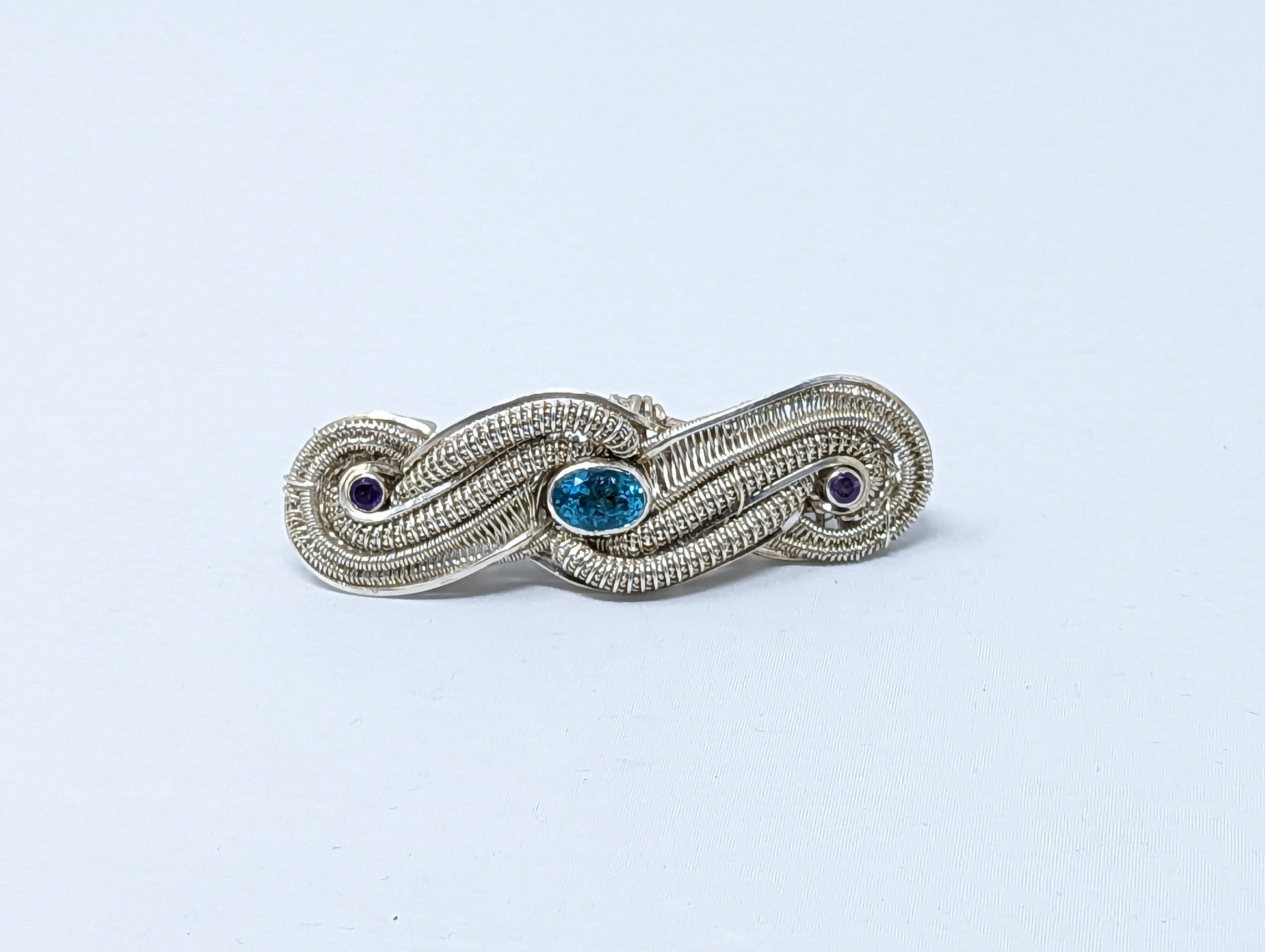 Silver Barrette with Apatite and Amethysts by High Grade Designs