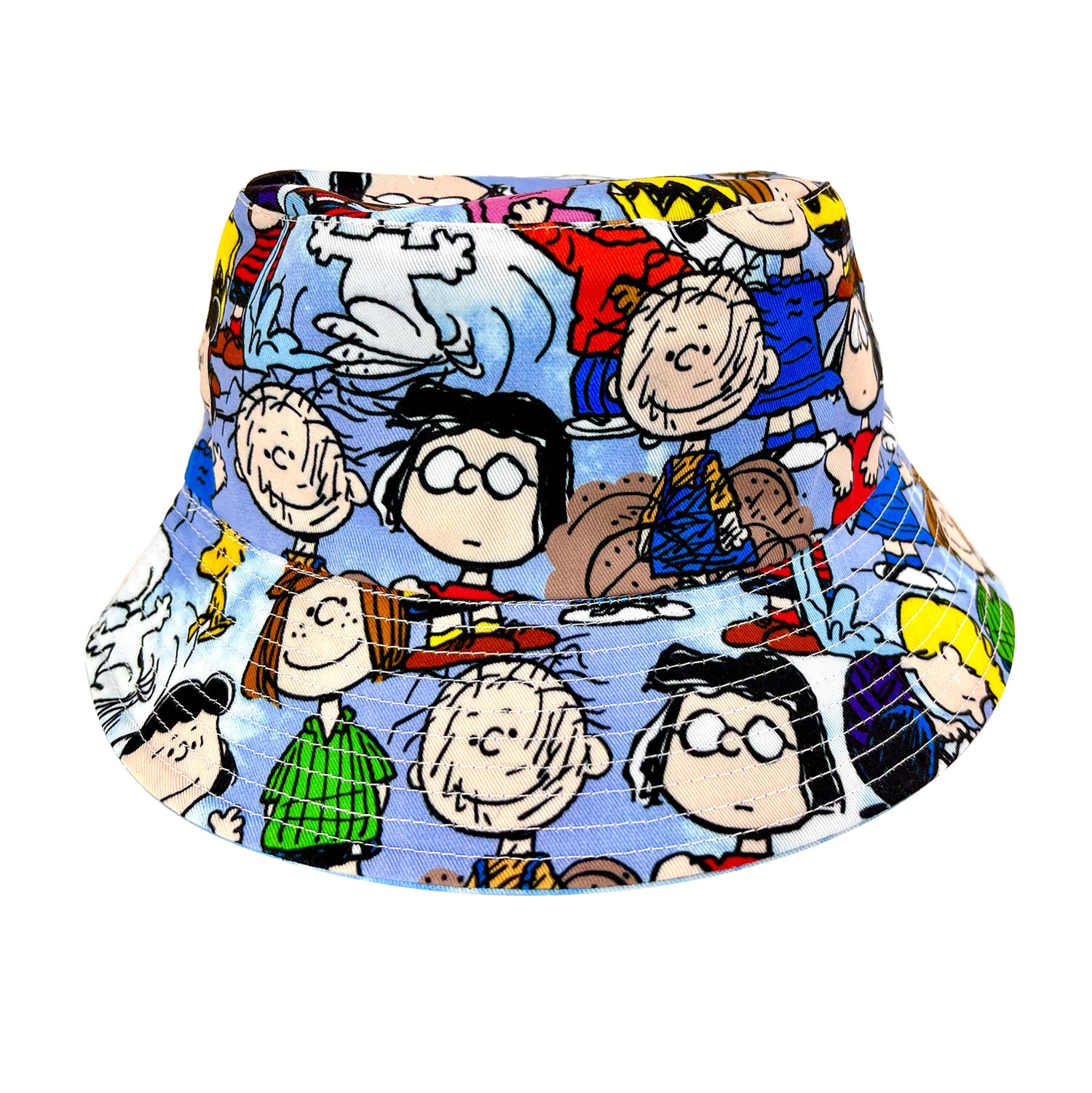 Show your love for the Peanuts gang in our Peanuts group bucket hat. Reversible to blue. Unisex style, 100% cotton.
