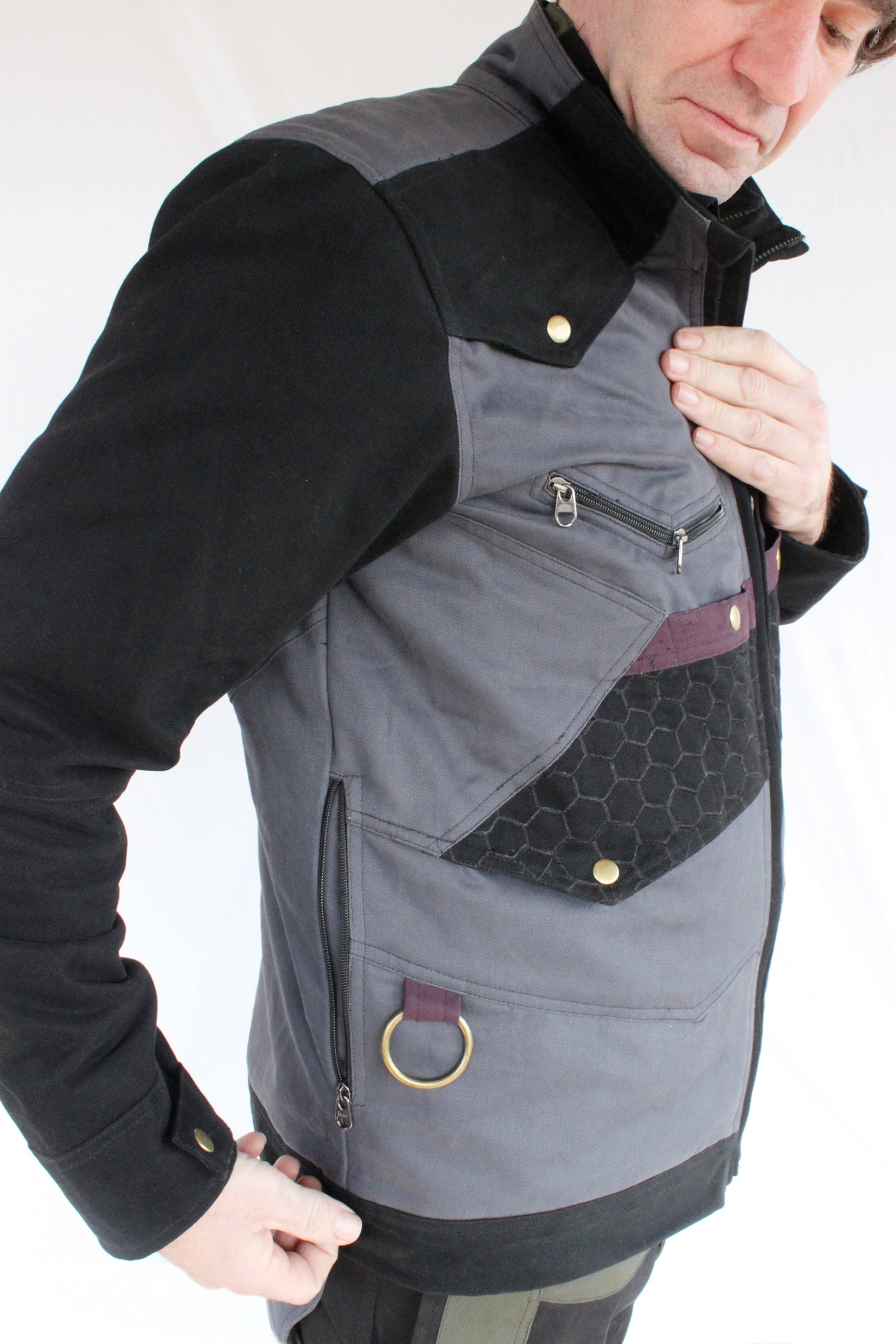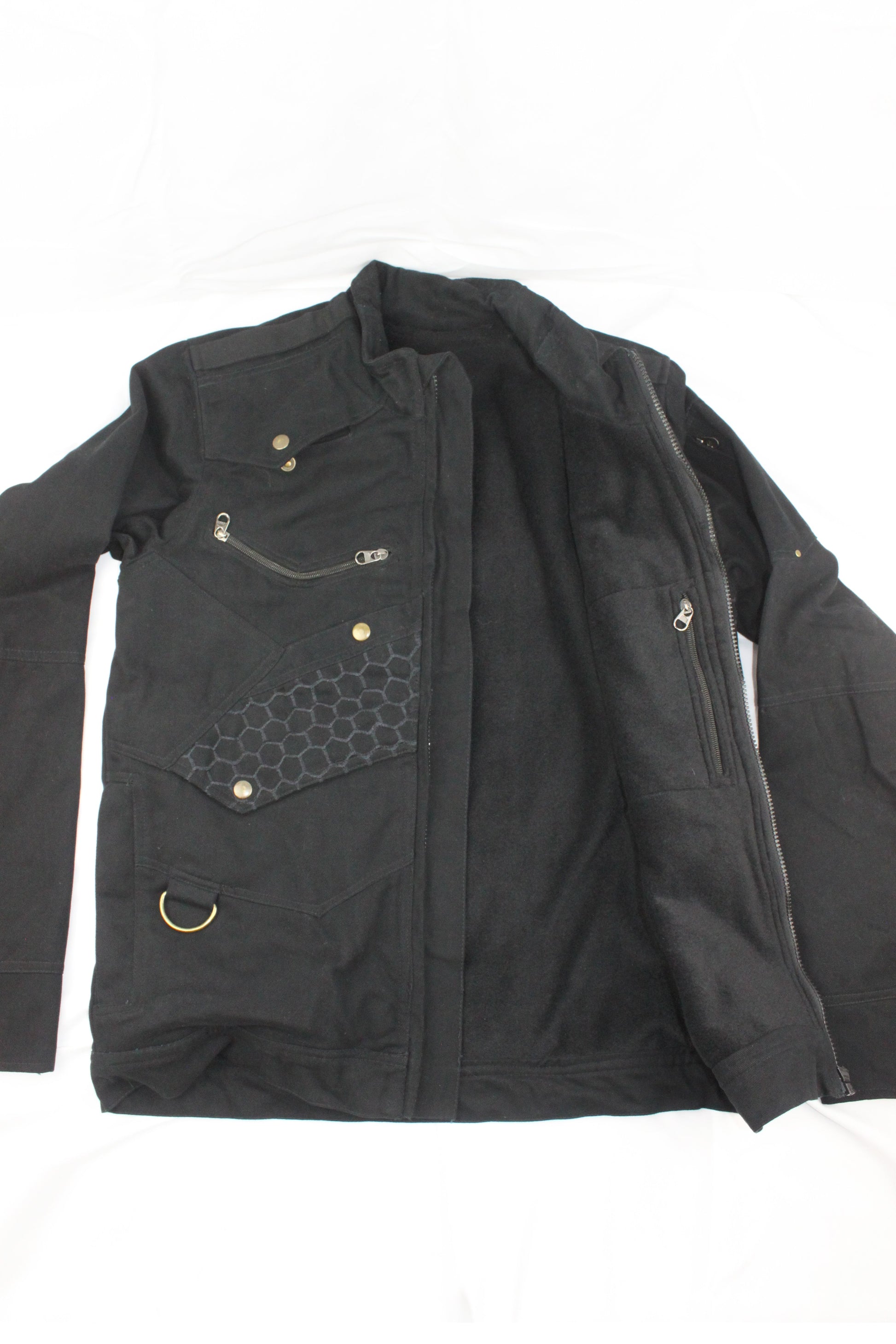 This bomber-style flight jacket features over 10 functional pockets, and a brass ring in front is perfect for a carabiner when you need an extra hand.