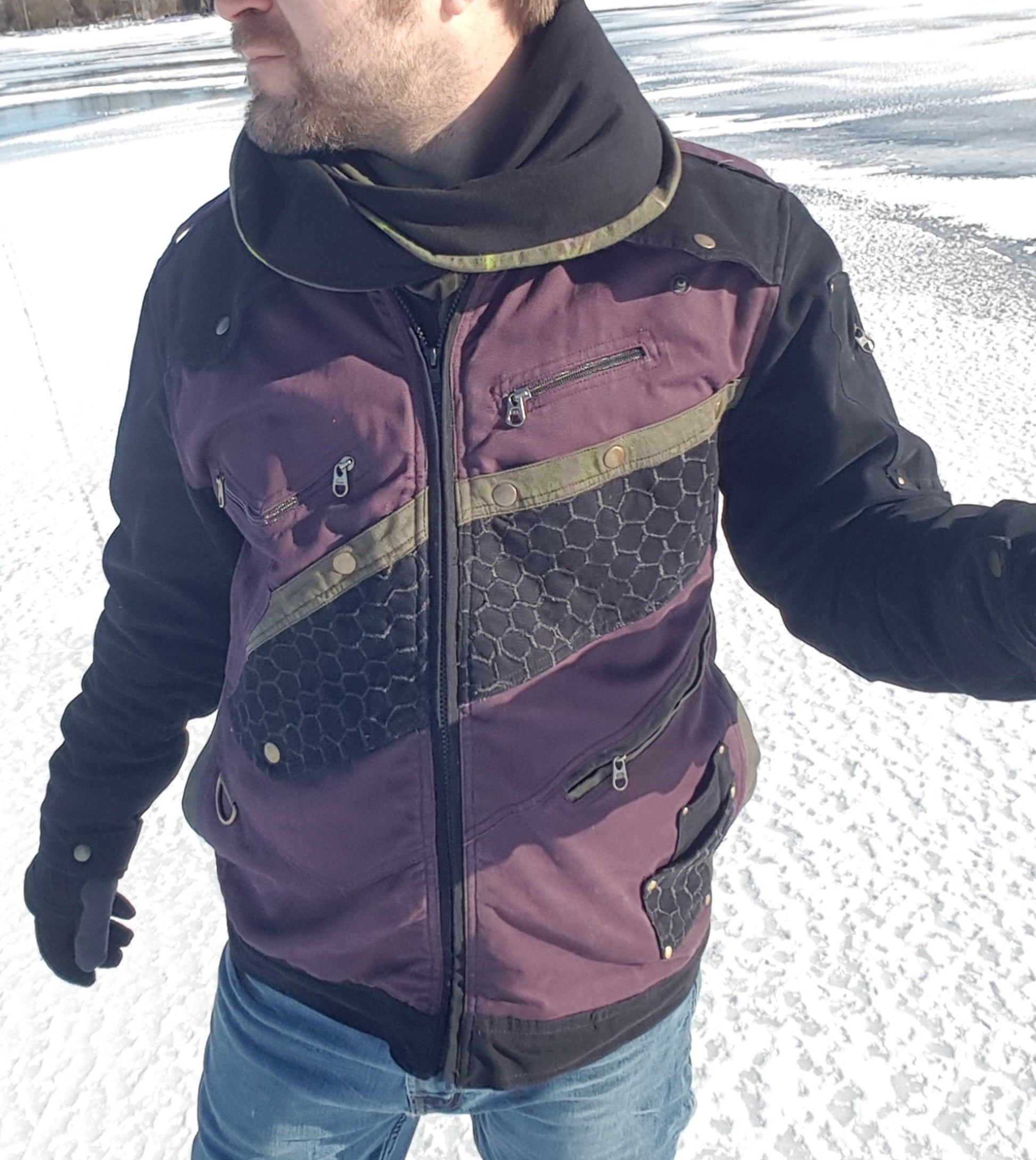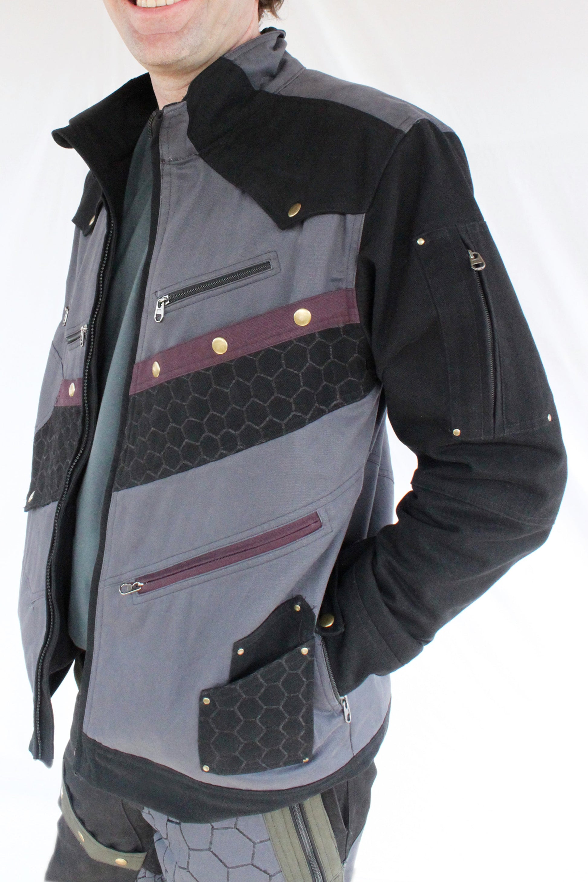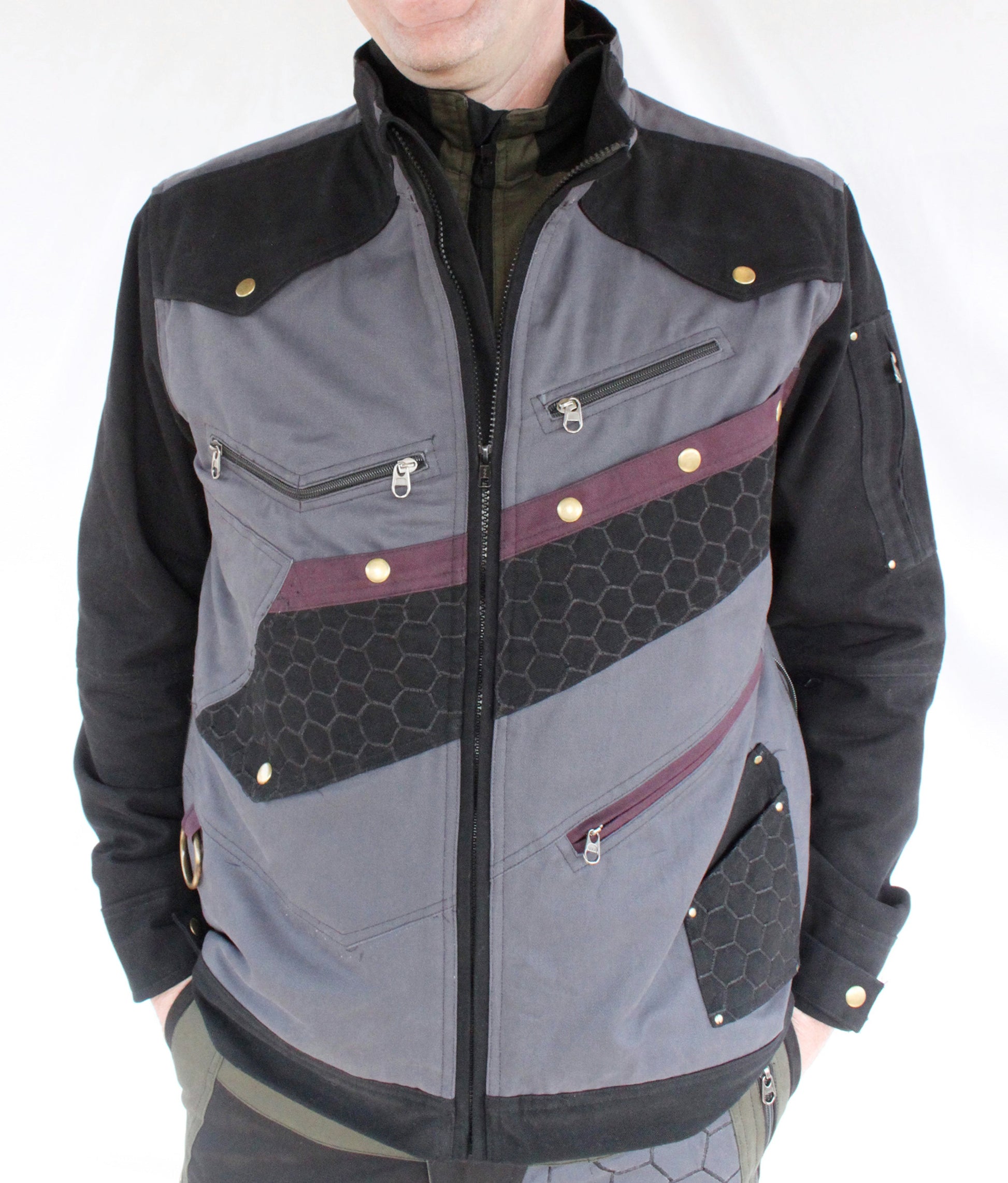 We’ve let our imaginations run rampant coming up with this design, which is a cross between 1940s bombardier style and our own fantasy of Elvish motorcyclists in a not-so distant dystopian future.
