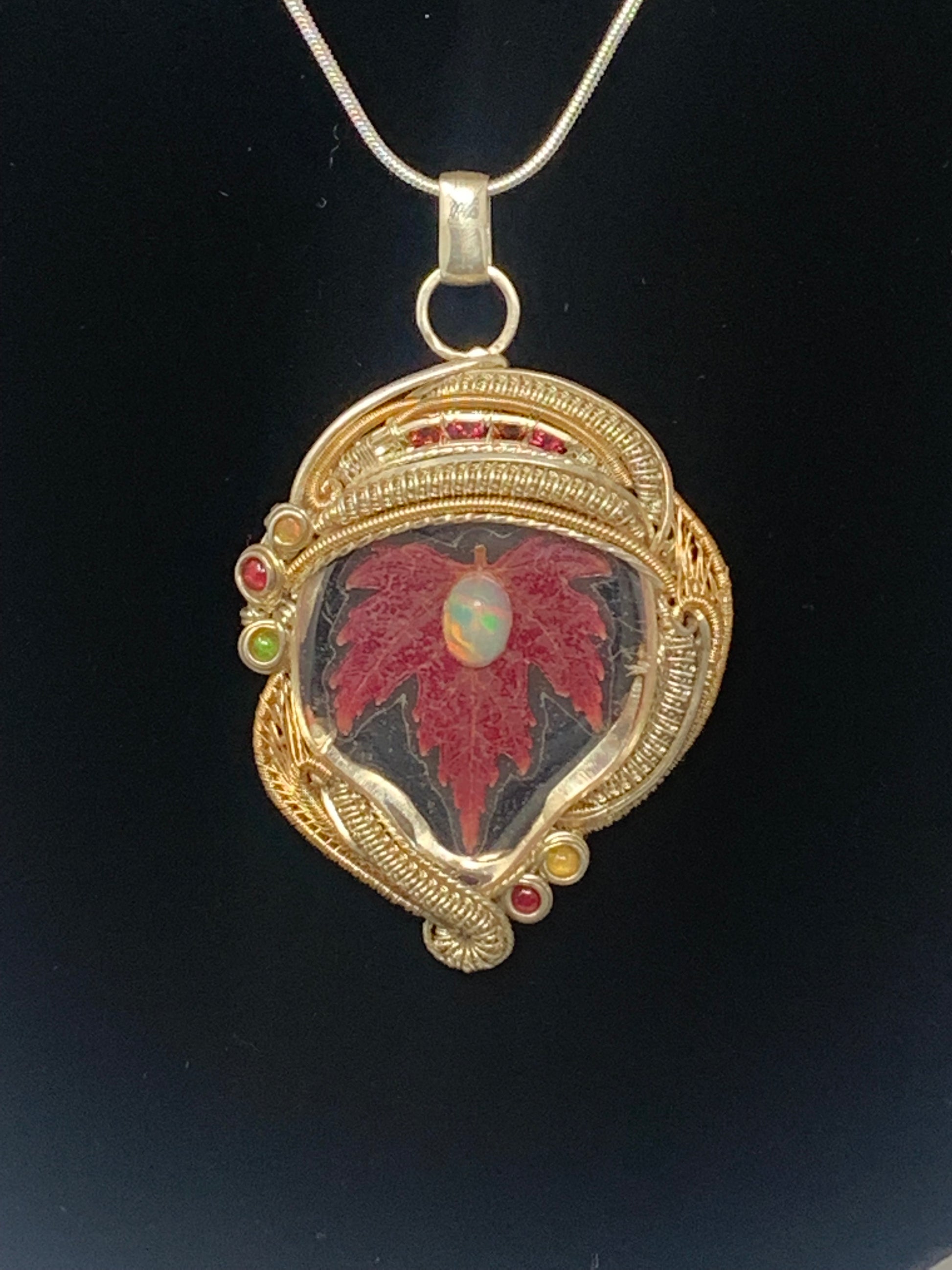Opals and garnets with maple leaf pendant by High Grade Designs