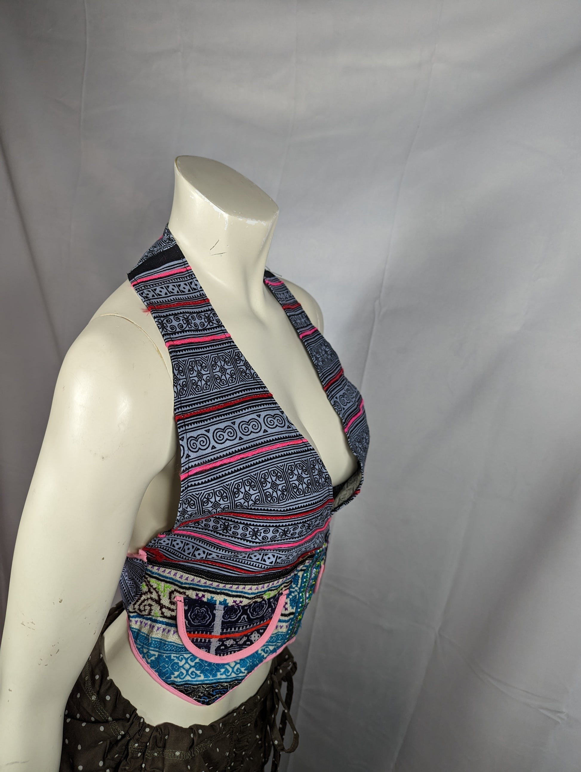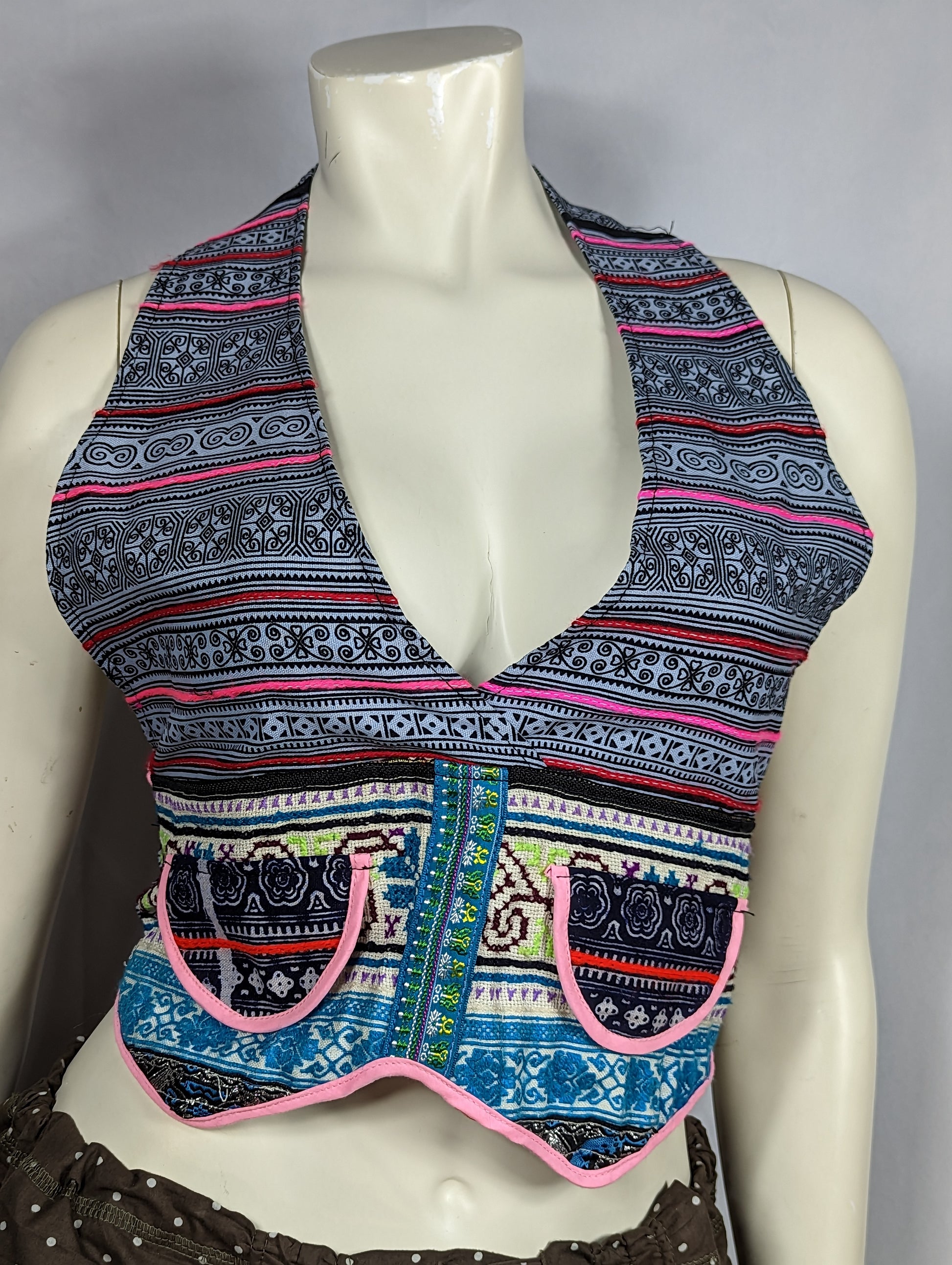 Fair Trade Himalayan crop top with a fun halter back style. Brought to us by Sharon Joy of the Re: World Bazaar. To find more go to: