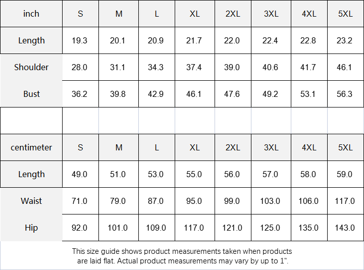 | centimeter | S | M | L | XL | 2XL | 3XL | 4XL | 5XL |