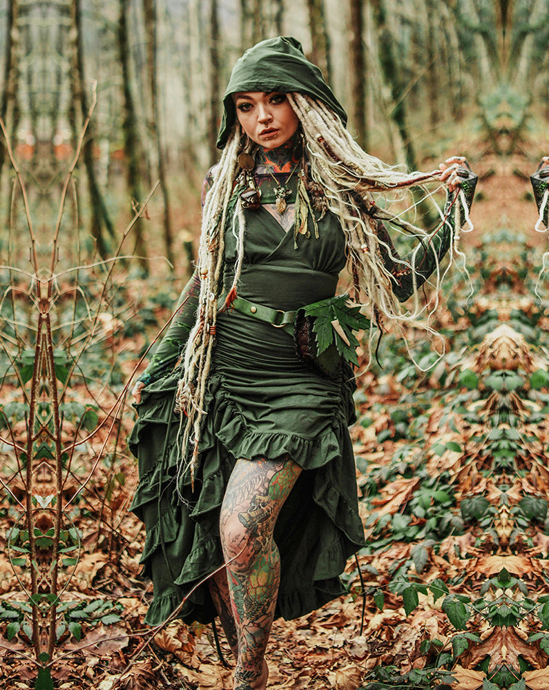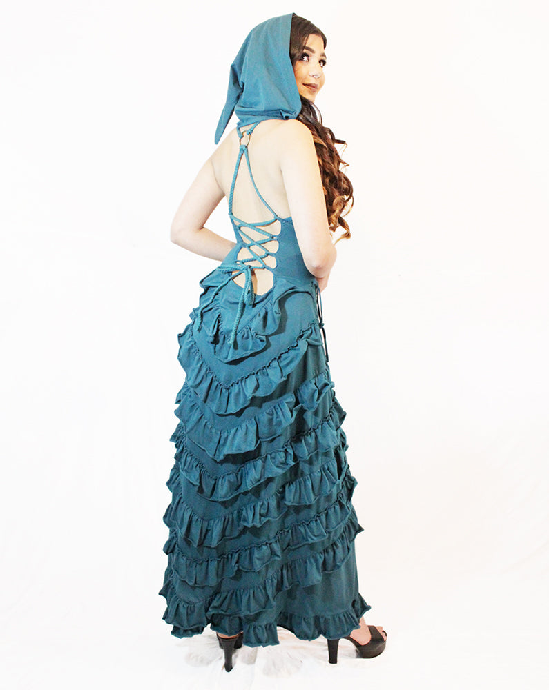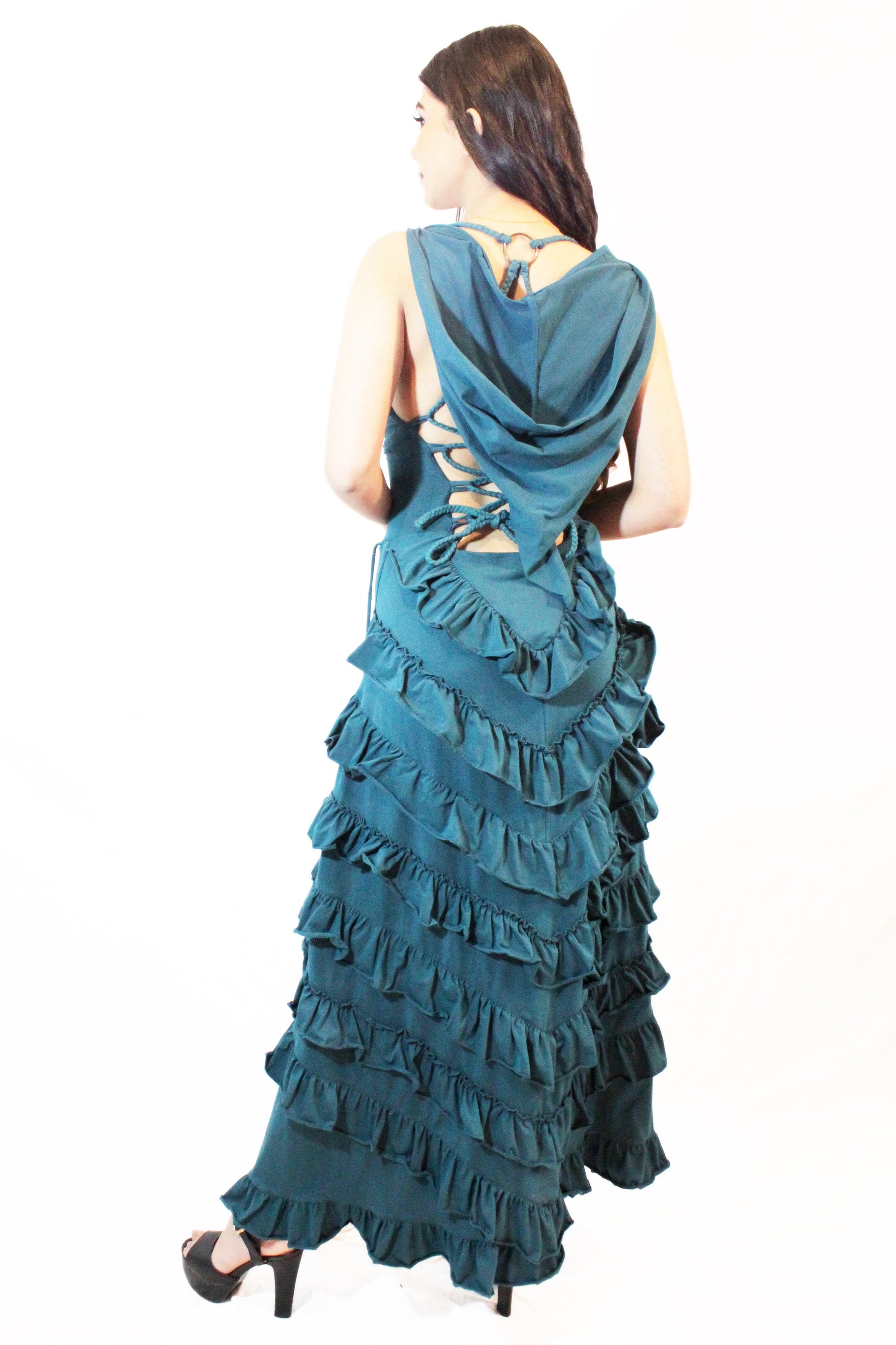 Be elegant and innocent while wearing the maxi full length gown for your fairy social gathering. May all eyes that fall on your beautiful back wonder what fairy is this? And as you flirt your way thru the fairy gathering, you shield your eyes from (some) of the attention with the adorable pixie hood.