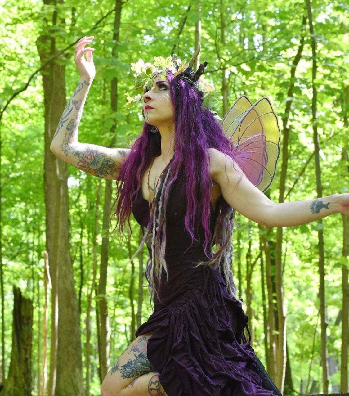 Now the gown has turned into a steampunk burlesque frock. Grab your partner, wand or unicorn, the pixie ball is lit.