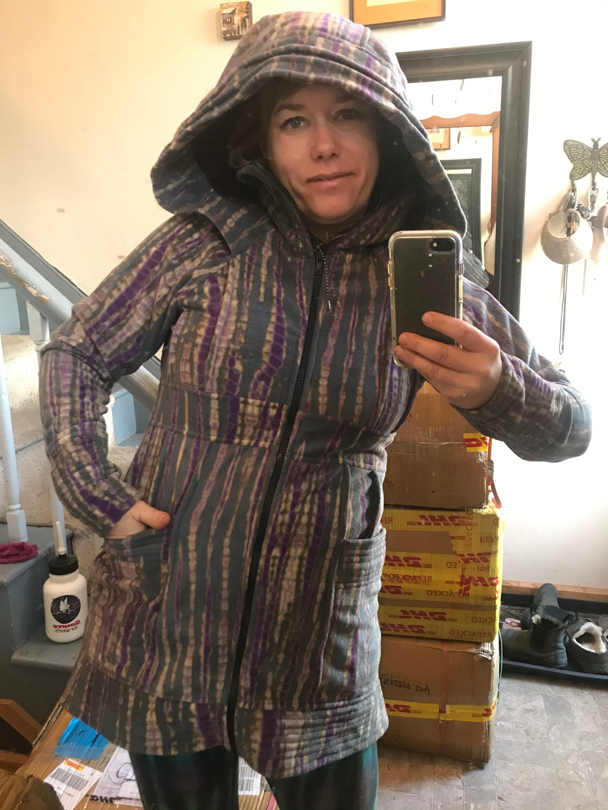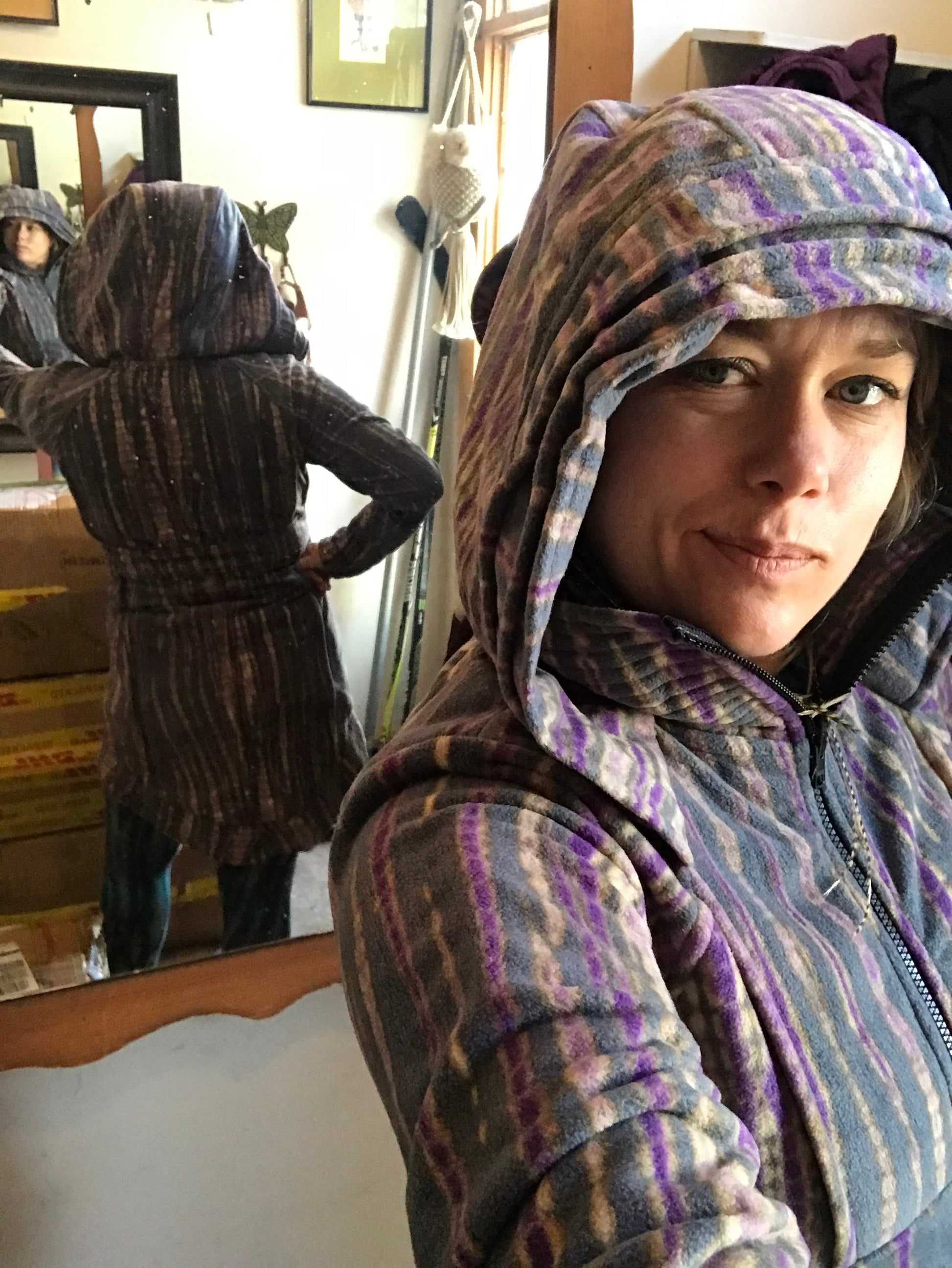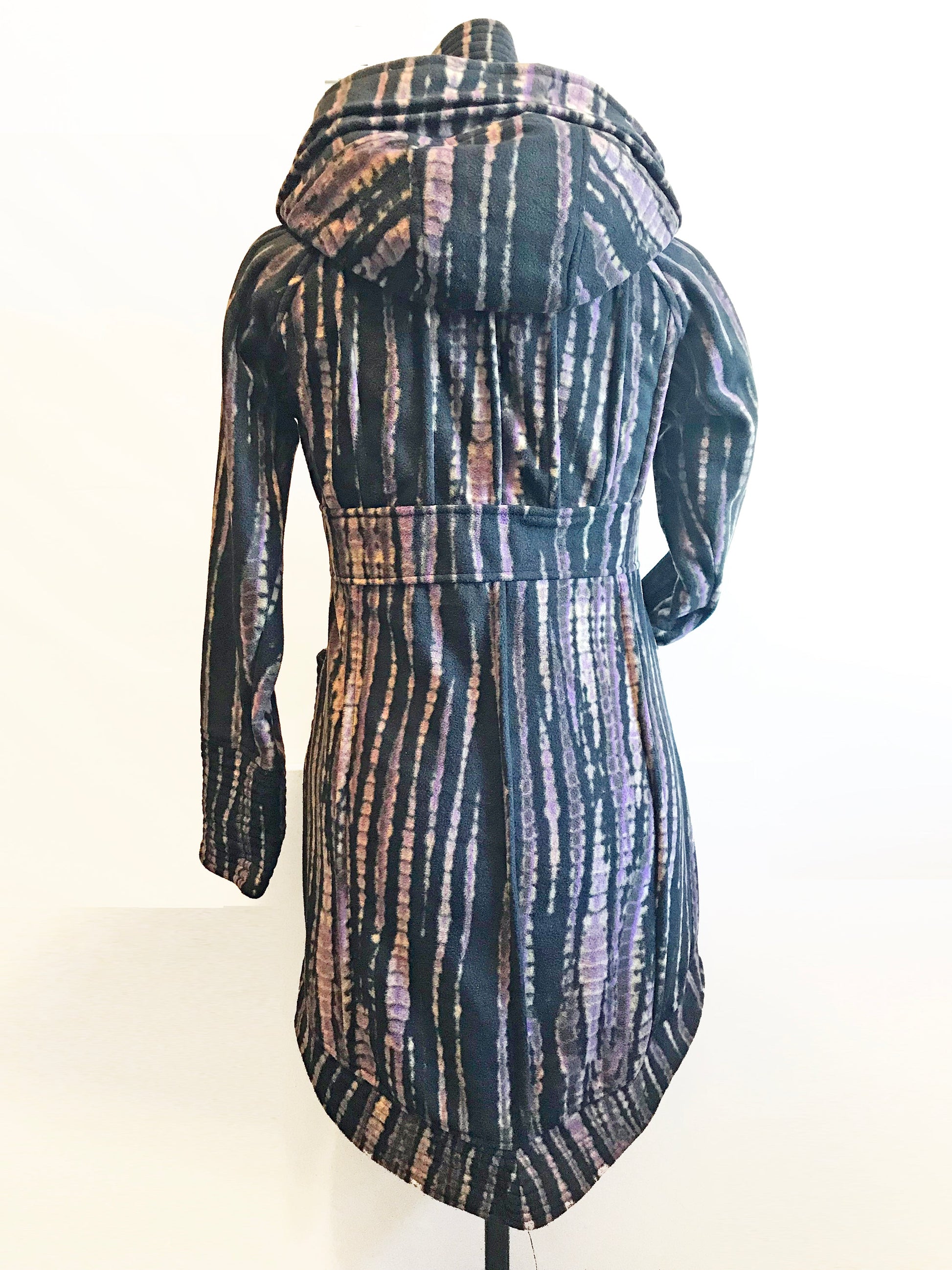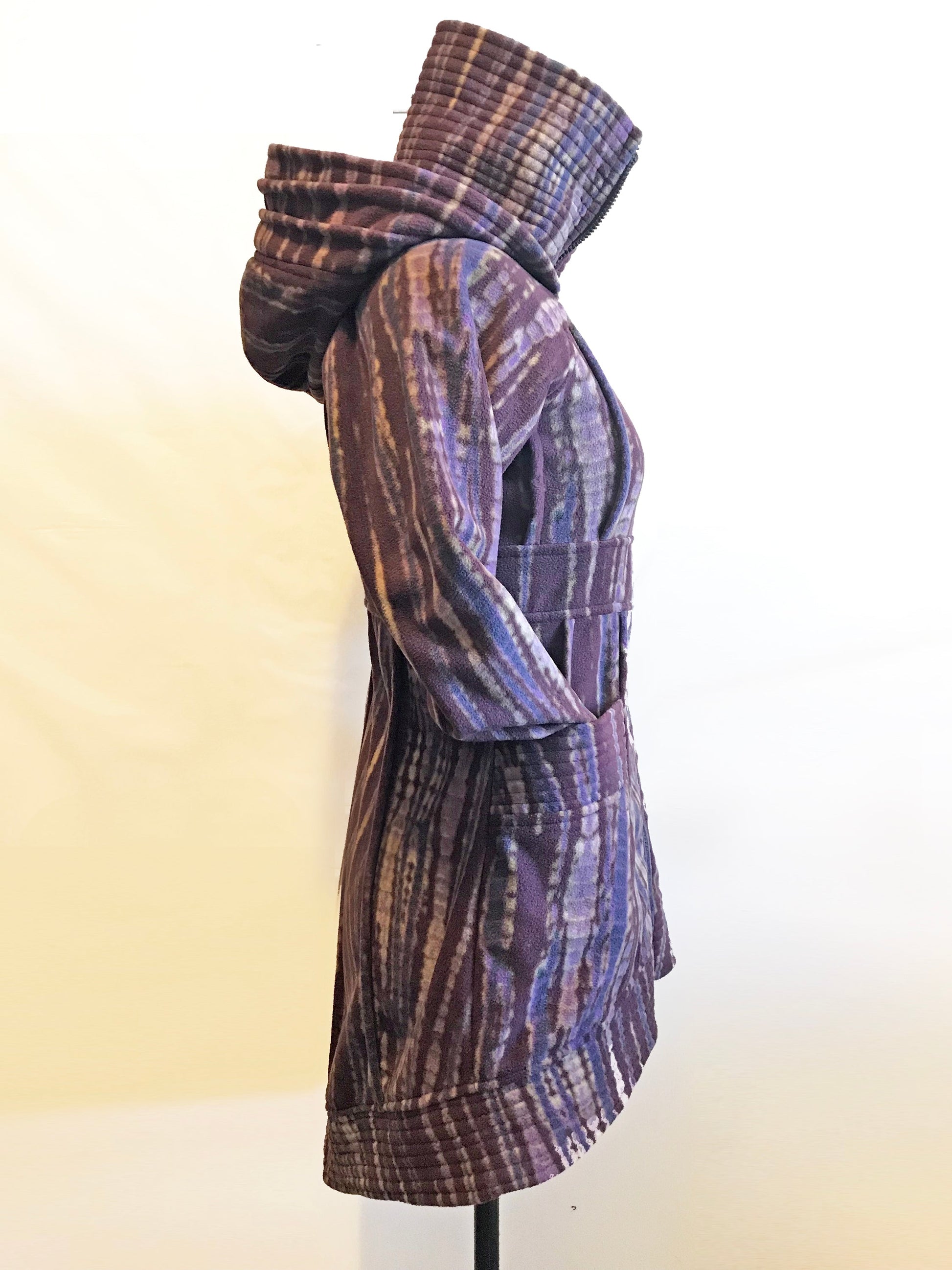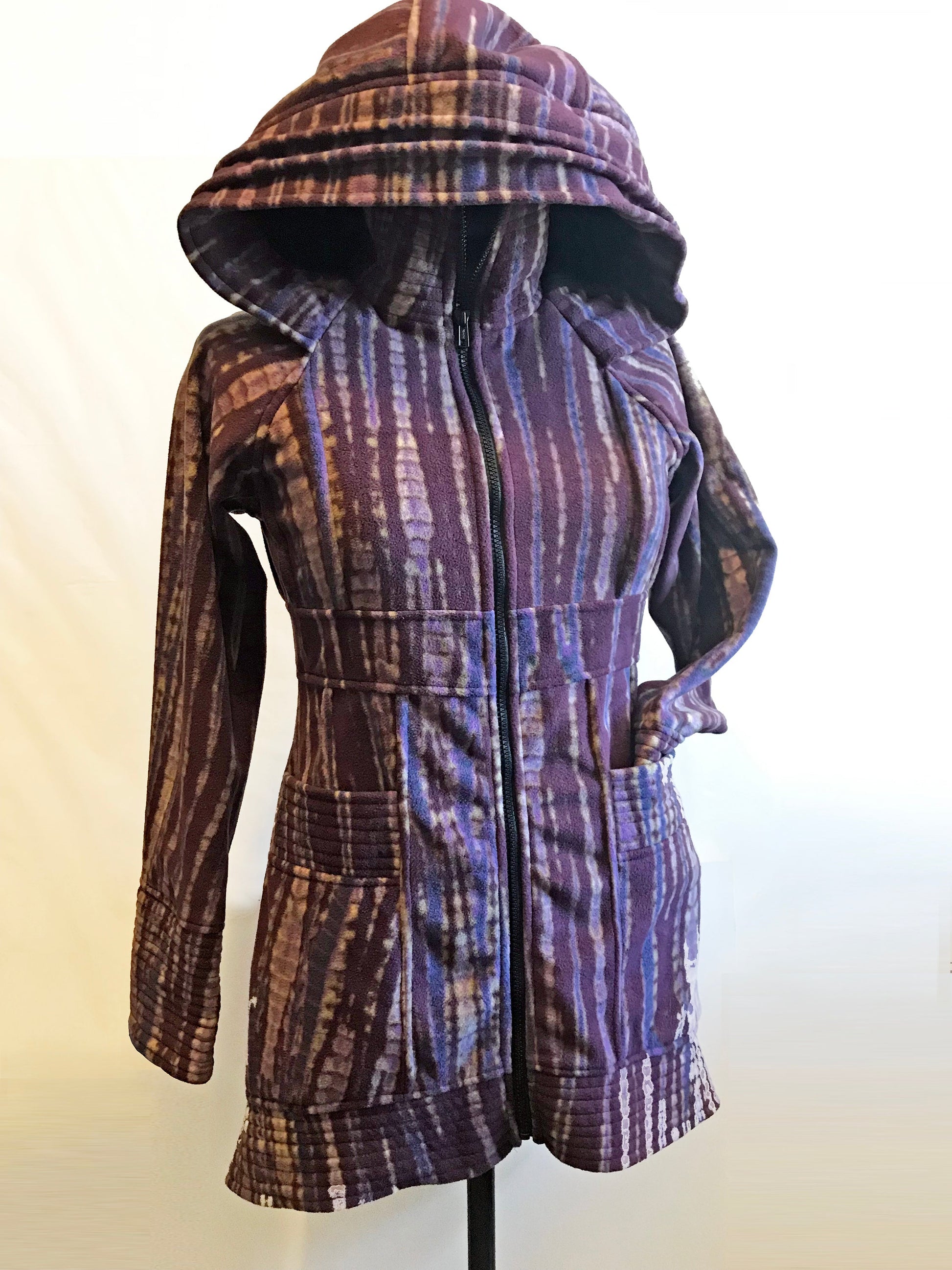 Adorable while being functional and comfortable. The super soft Fairies Fleecey will keep you warm, prepared, and can be worn under your parka too. In a flattering hourglass shape along with vertical Tie Dyed stripes, this hoody is slimming while serving your fairy needs for generous pockets and a lined hood.