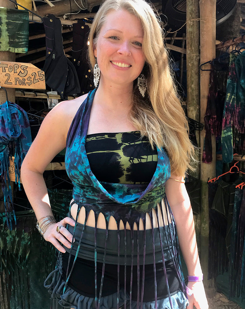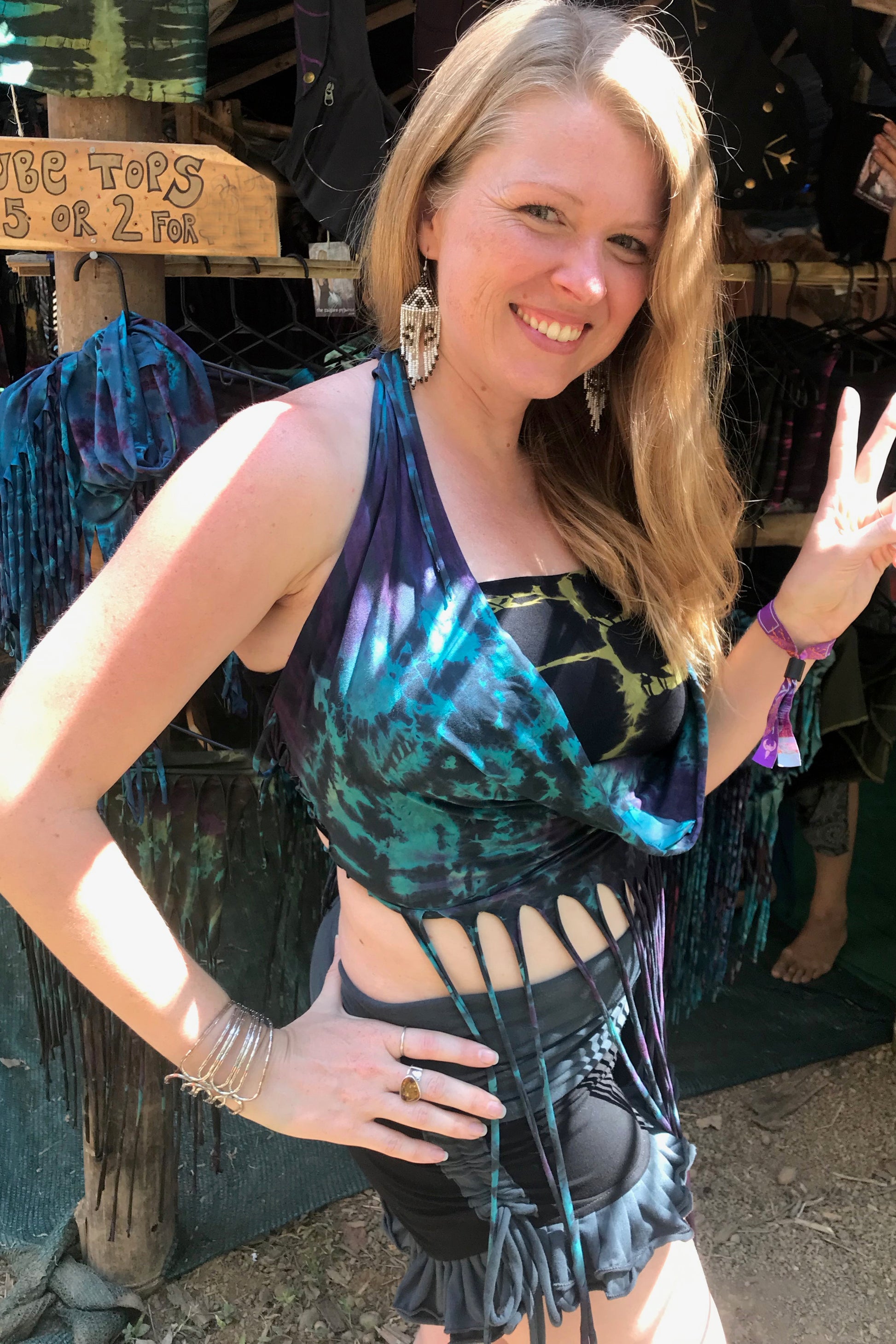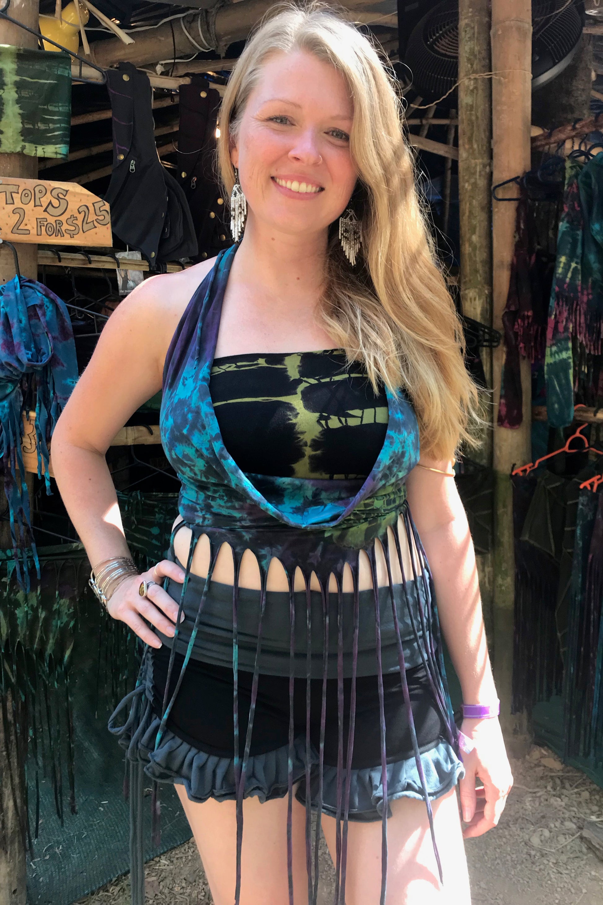 Fairies are multi dimensional, multi tasking and multi in love with designs that can do multiple things…and the Tie Dye Wrap Fringe was a skirt, but now it’s a top and a scarf…