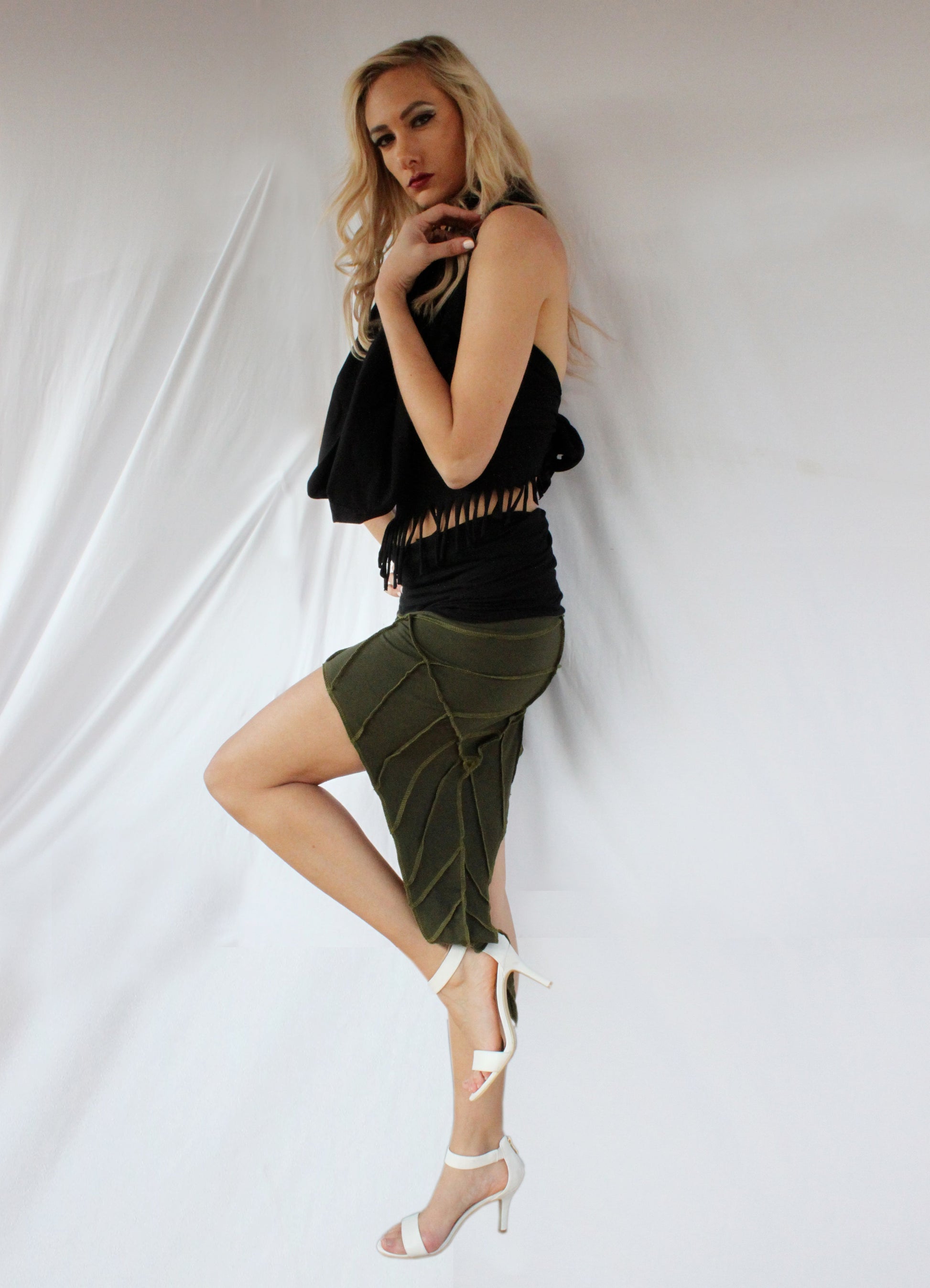 You can now wear this actual Leaf Skirt on it’s own because the body is longer with our fold over with elastic design.