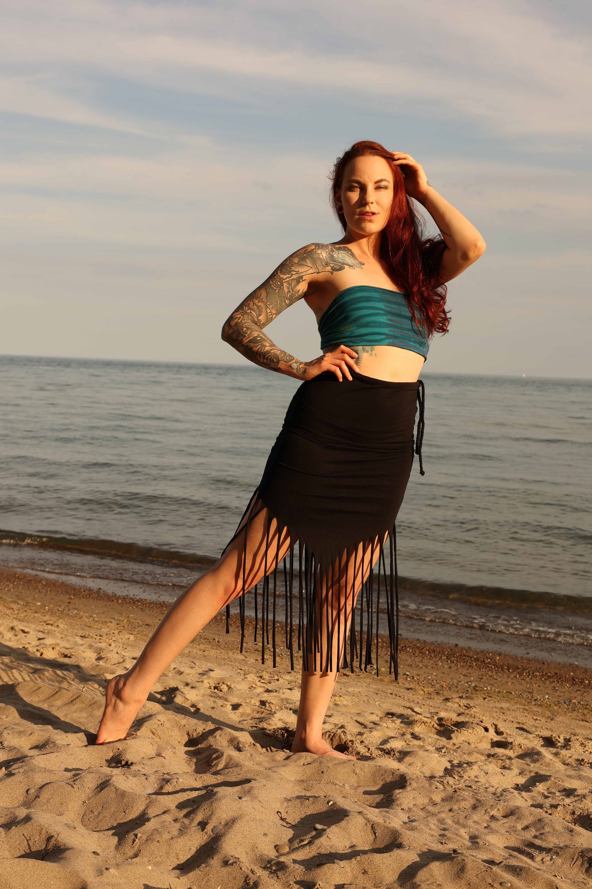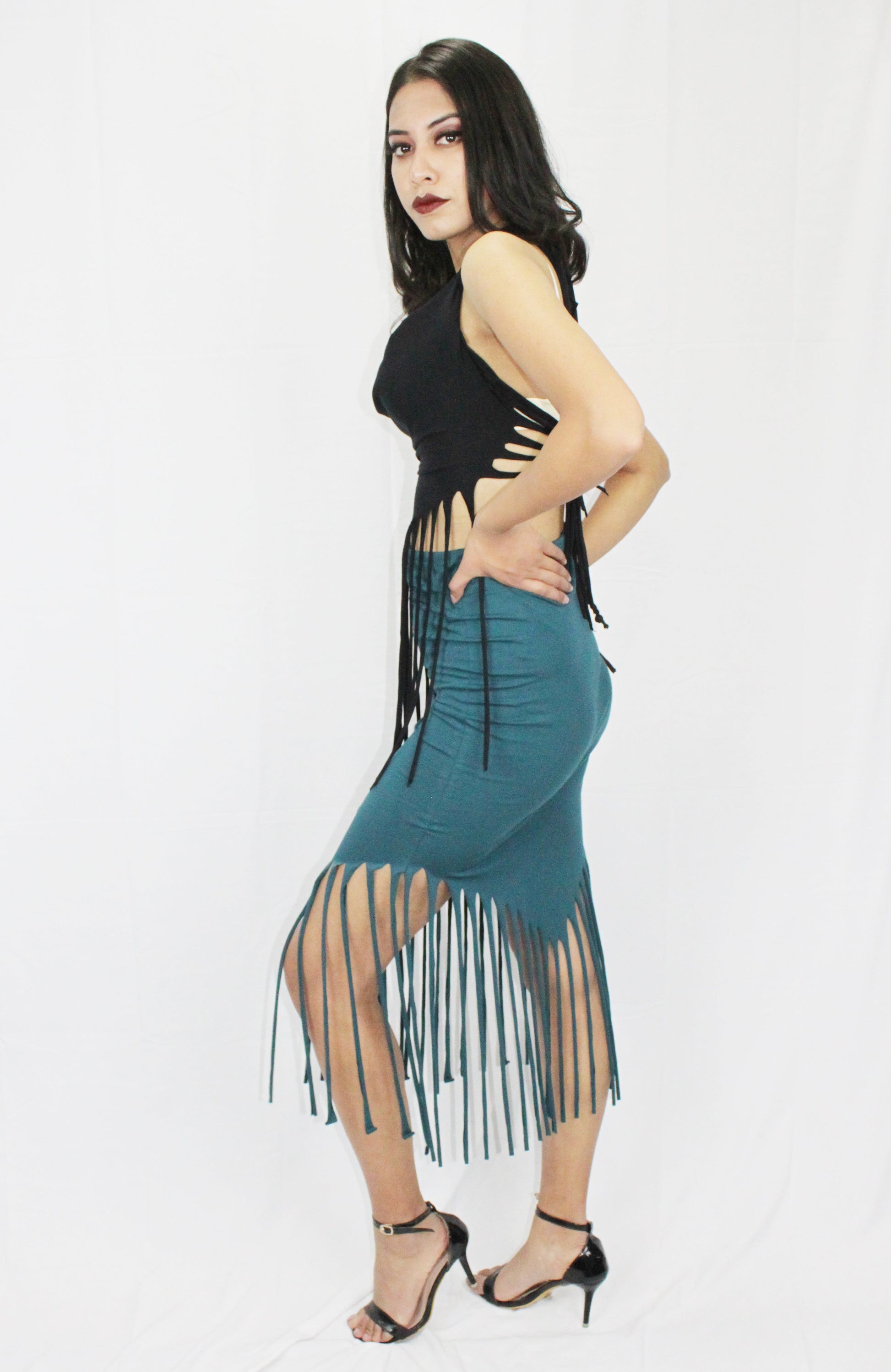 Slip into the knee high fringe skirt when you want to combine bohemian with a little country and a whole bunch of flirty sassy fairy! Practical and can be worn for everyday wear yet pair with more fringe designs and you’re sporting some serious fringe festival fashion influence.